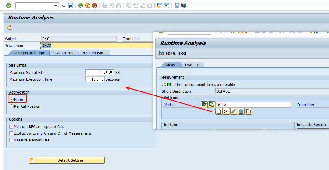 进入事务码SAT,创建一个新的跟踪Variant,Aggregation(聚合)记得设置为None,否则后续查看结果时将得不到期望看到的完整树形结构。