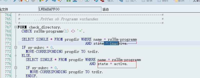 点击上图的Display按钮,就能看到访问数据库表PRODDIR的代码了,位于第774行: