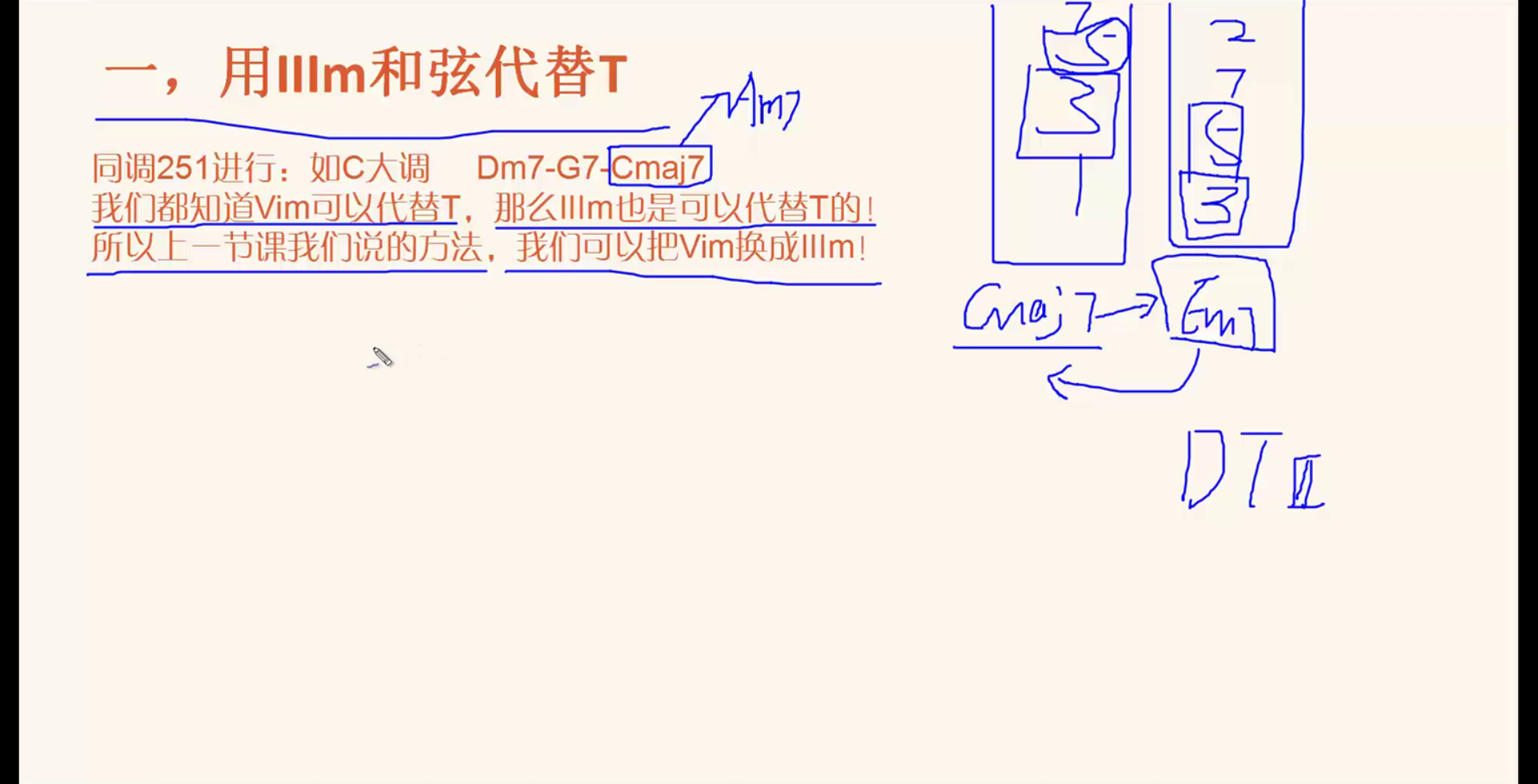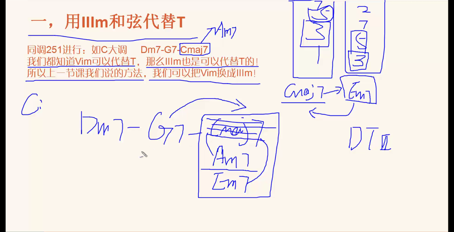两个和弦可以互换。组成音相同的超过50%,组成音包括对方的三音。