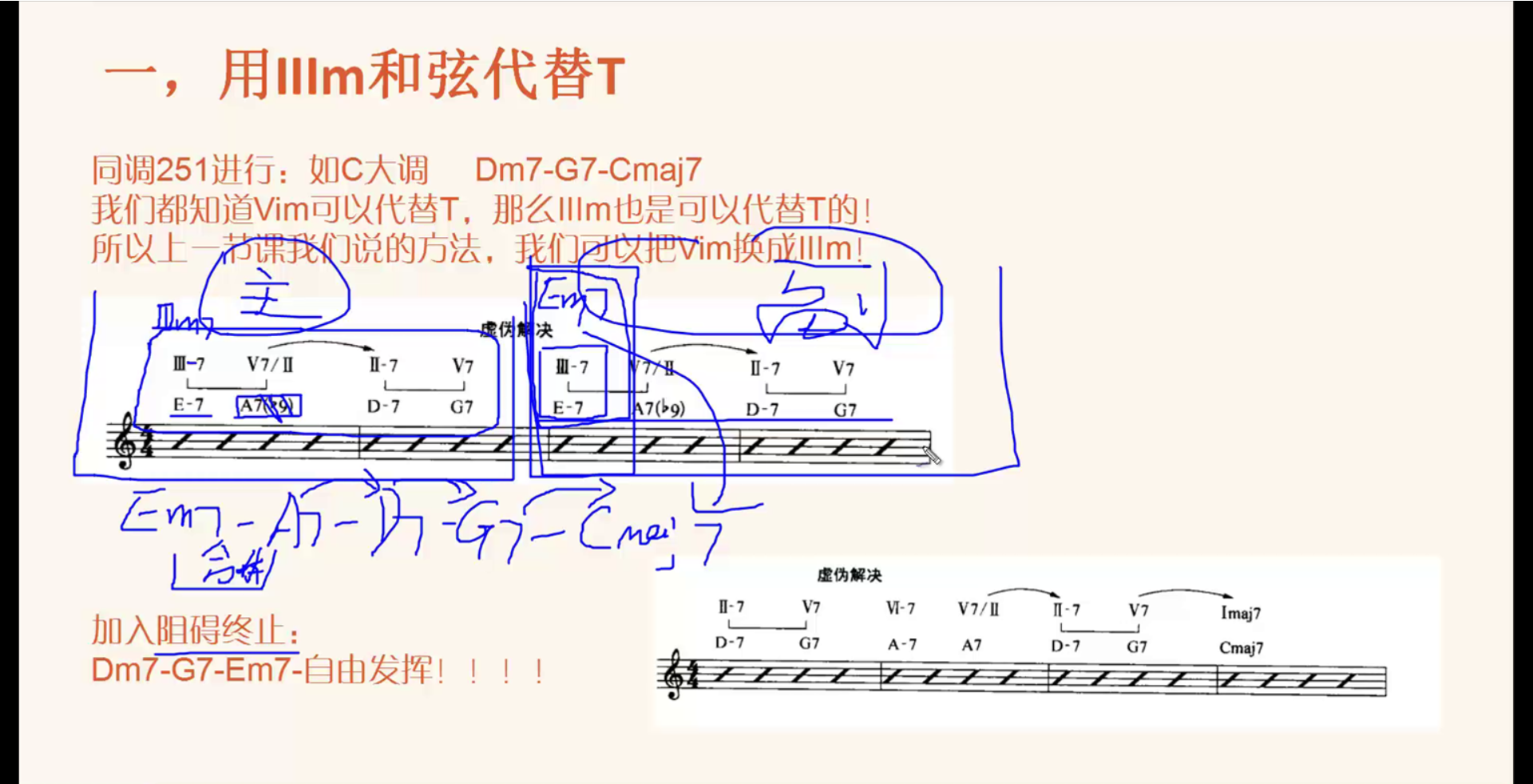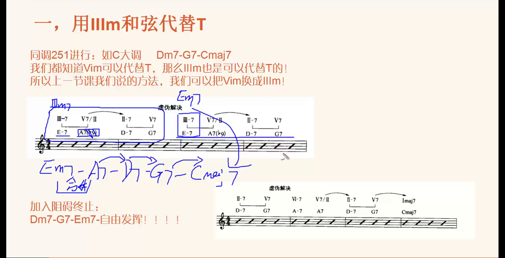 虚伪解决,不是真解决。替换掉解决,但是又不能在音响效果上有太大差异。使音乐感觉要结束了,但是却还能在满足乐理(和弦功能)的情况下,再进行一段。
