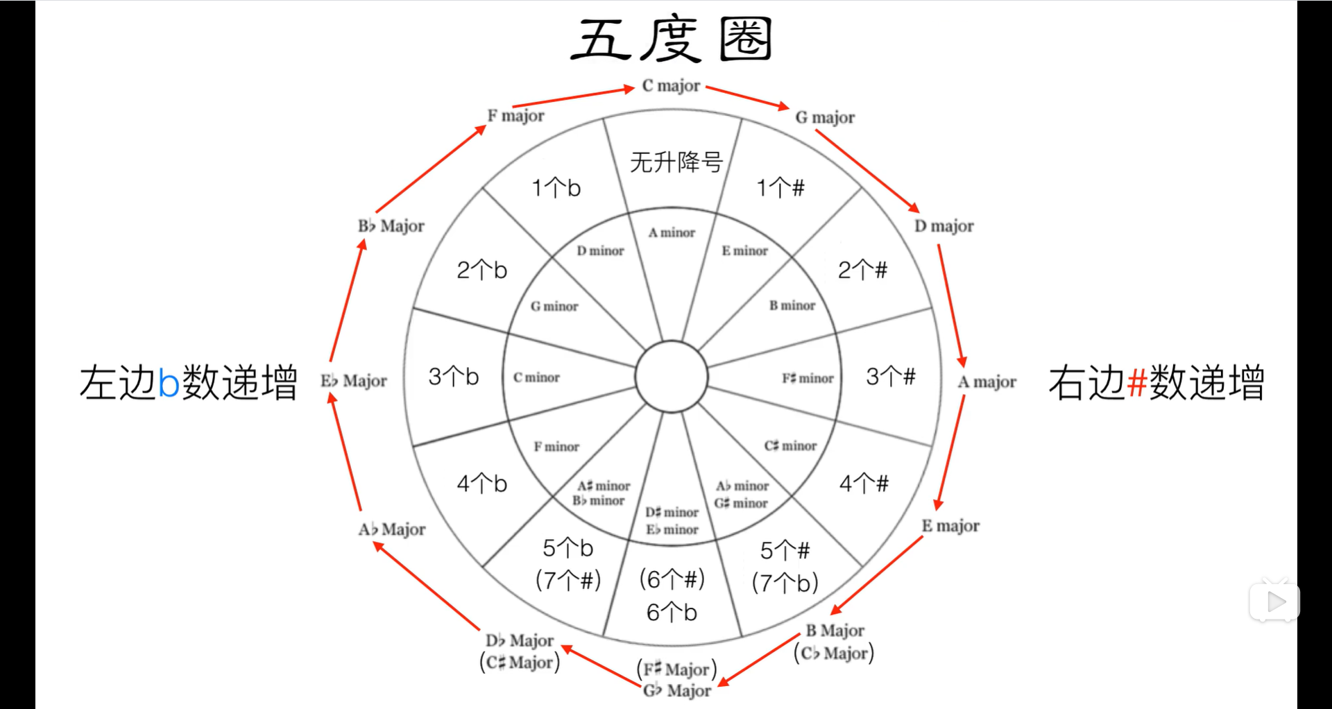 音乐里所有的东西都在五度圈里。搞明白了五度圈,音乐里没有你不知道的。包括了音节、调式、音程、和弦、和弦运用......