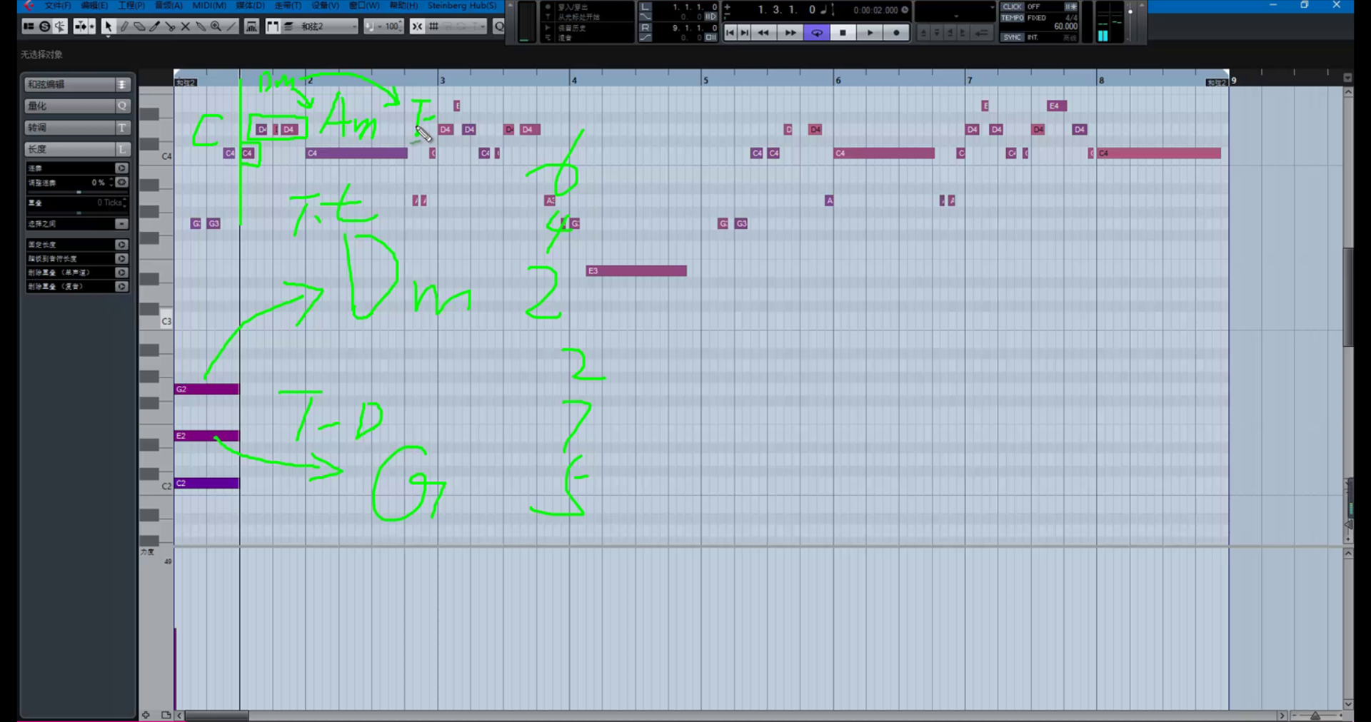 C到Dm是下七,C到G是T—D,现在看这两个都可以。