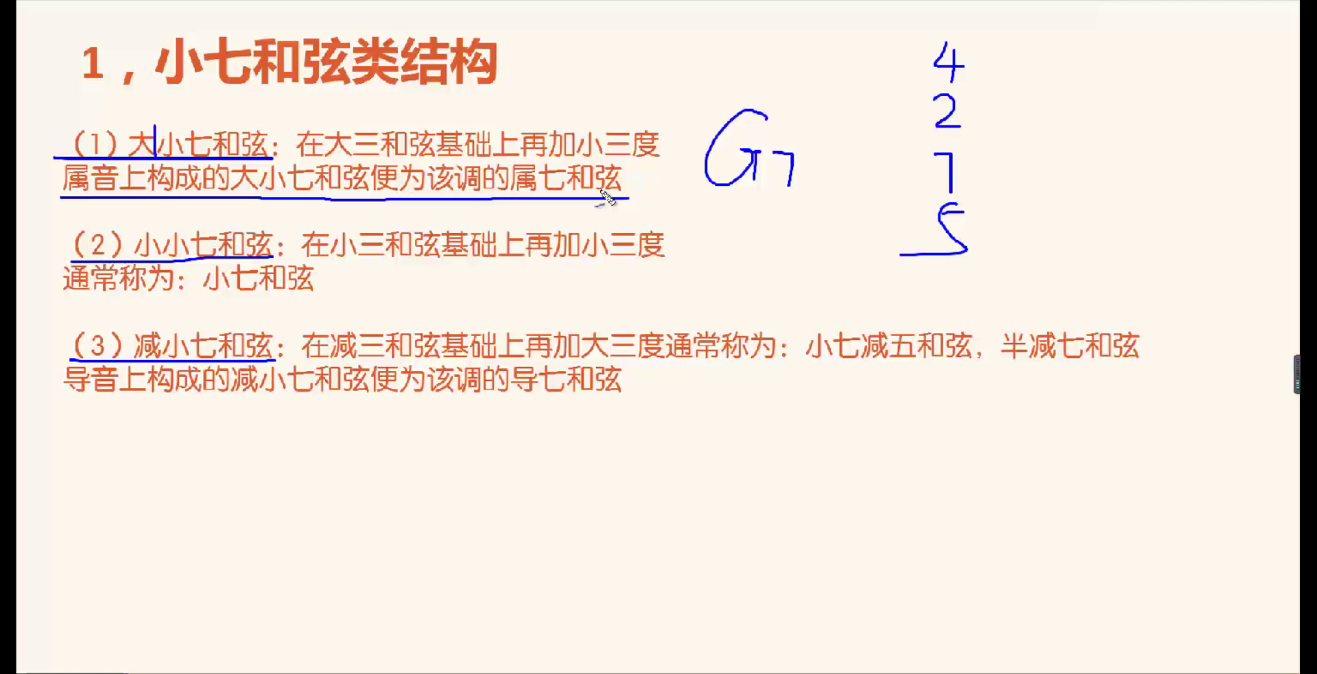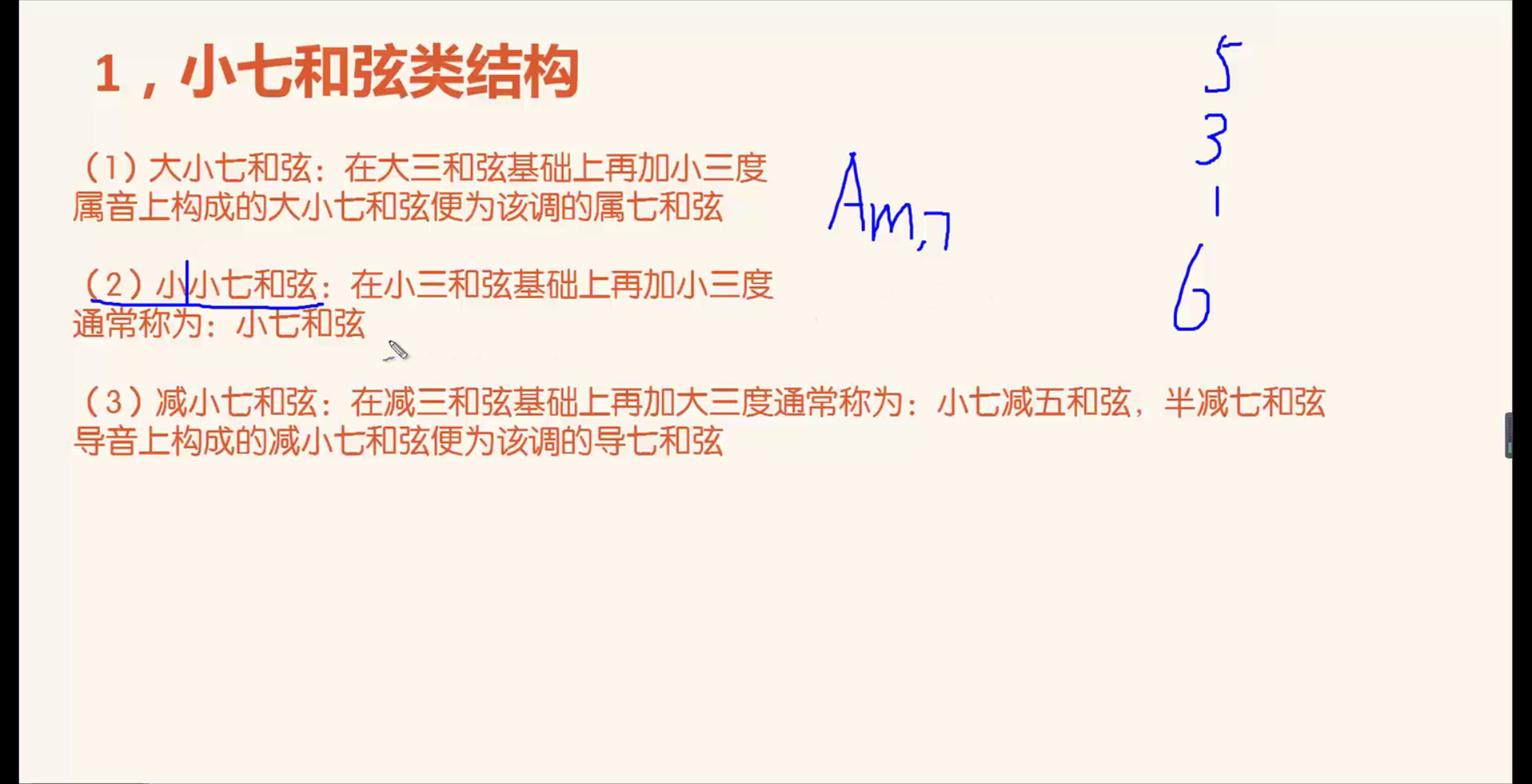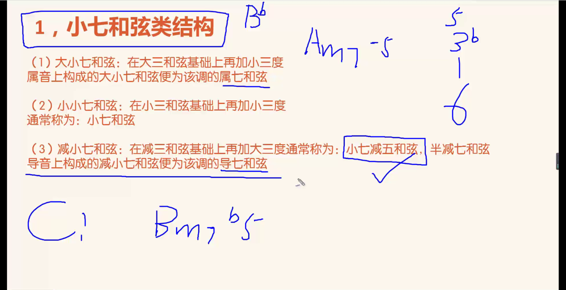 Bdim加大三和弦构成减小七和弦,写为Bm7-5或Bm7b5,而不可以写为Bdim7,Bdim7真的是减七和弦(见下节课)。