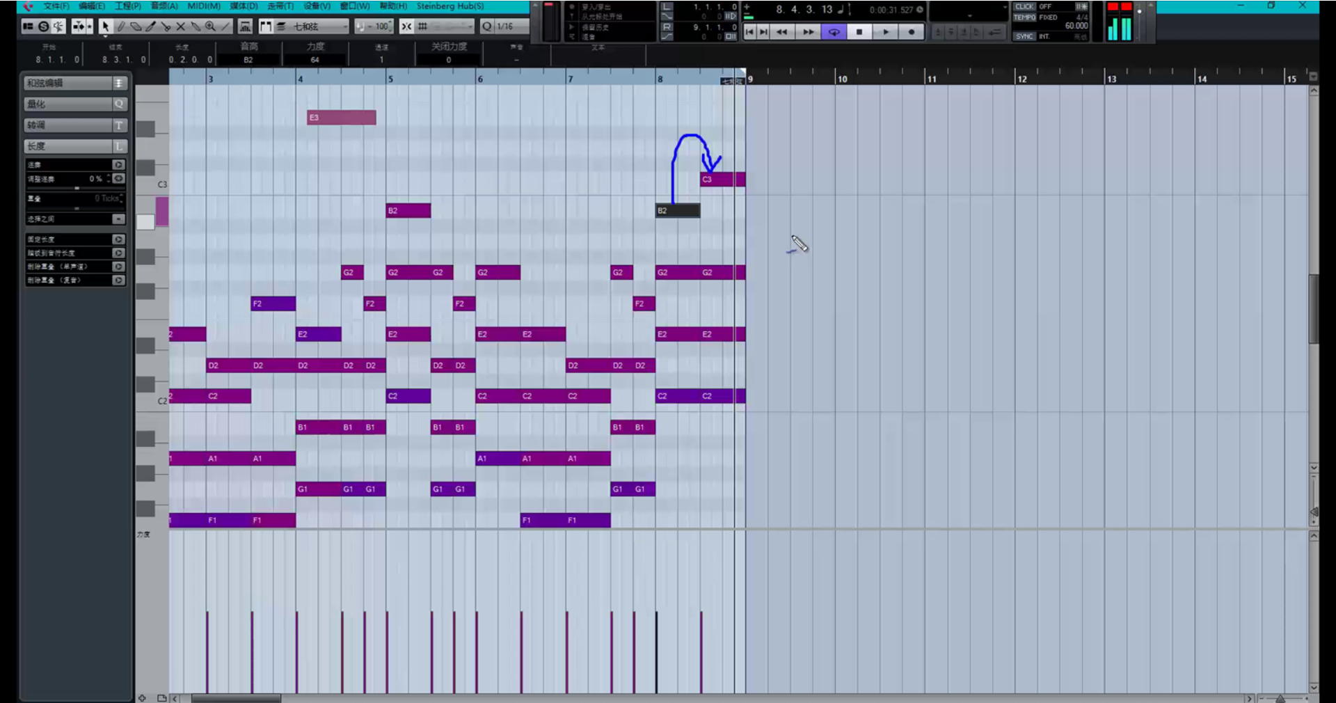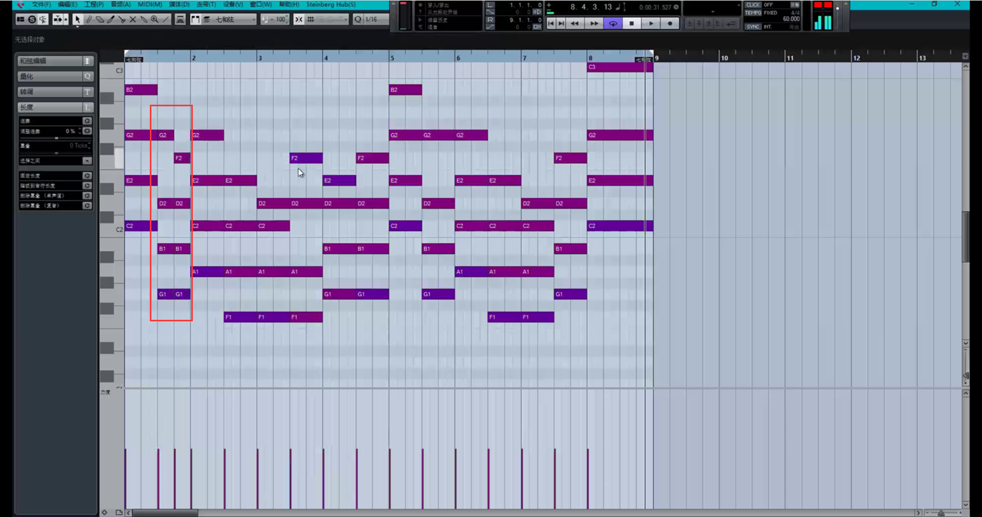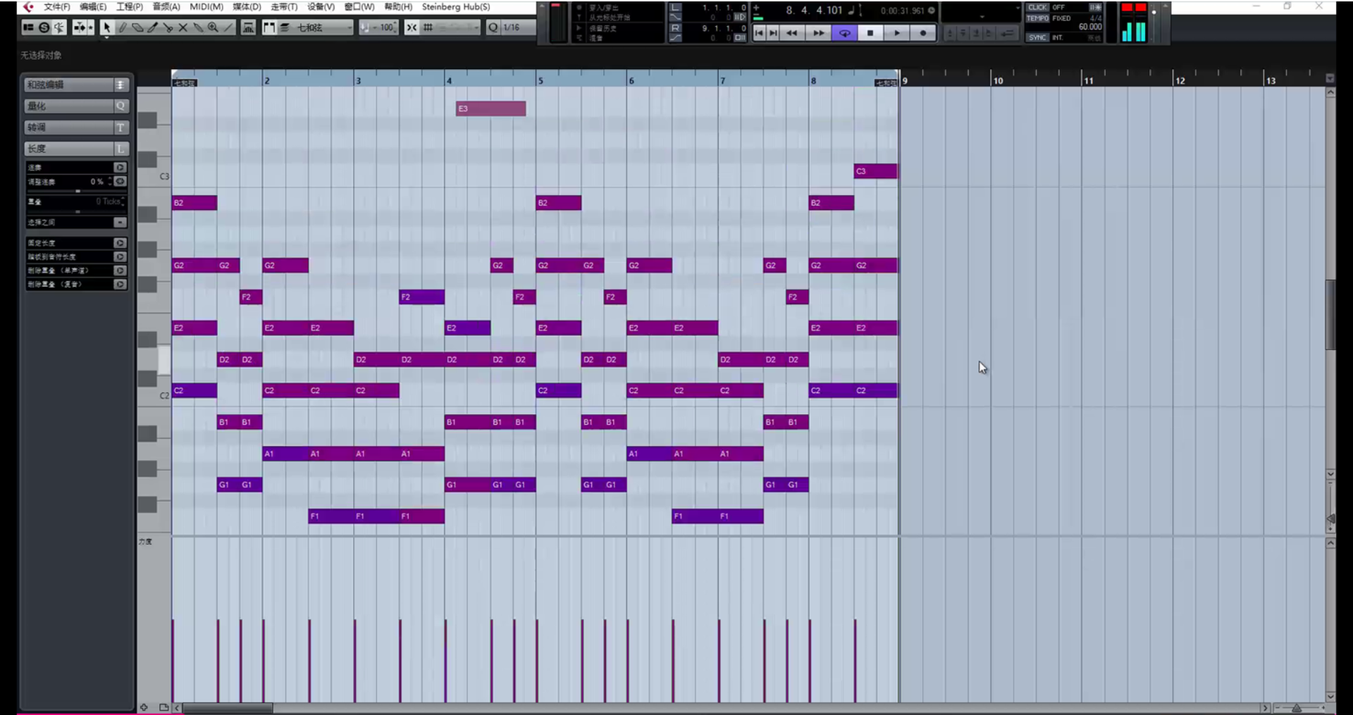 让和弦多一些变化,比如把这里改成这样。