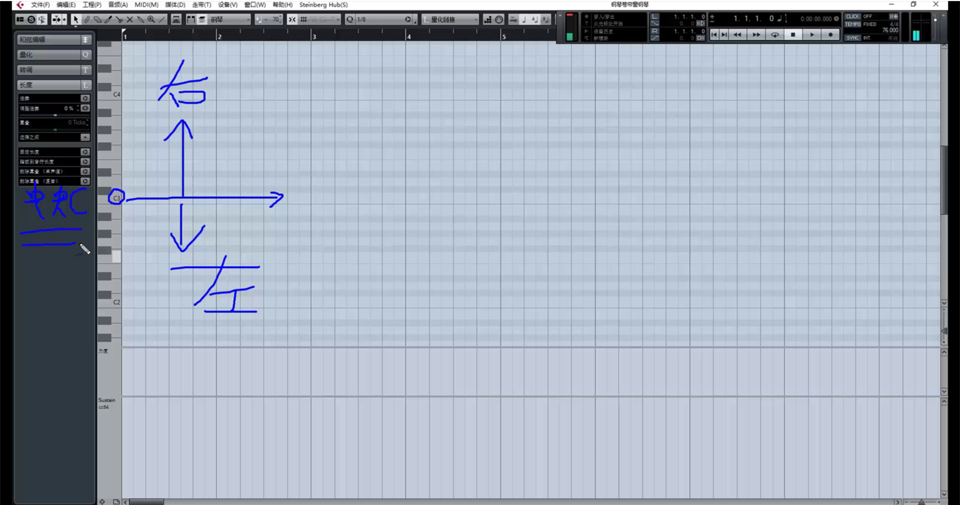 中央C音上,右手弹奏;中央C音下,左手弹奏。