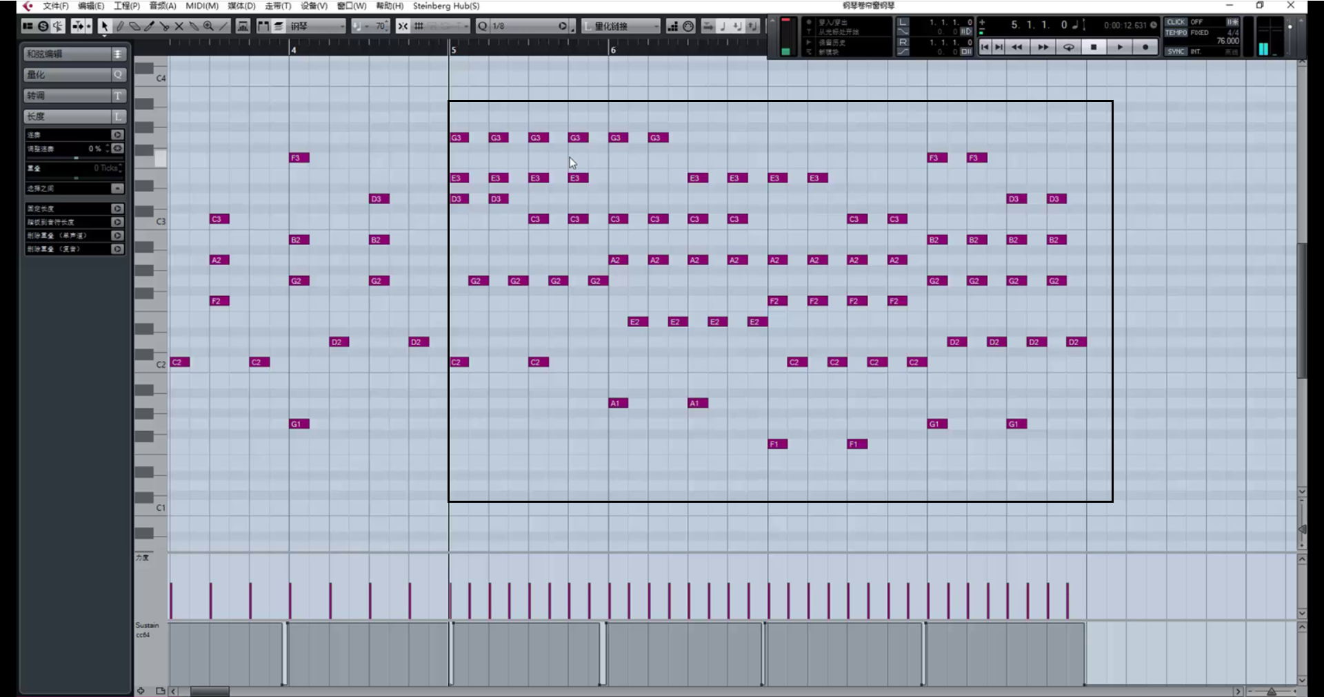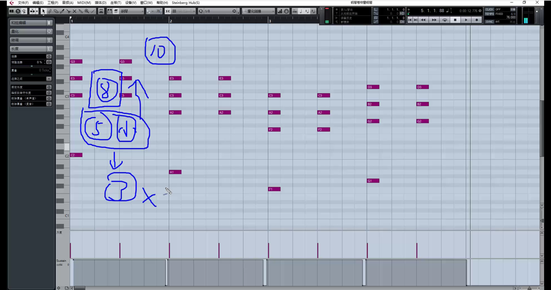 这样的话,左手就比较“闲”了,可以让左手多弹一些音。