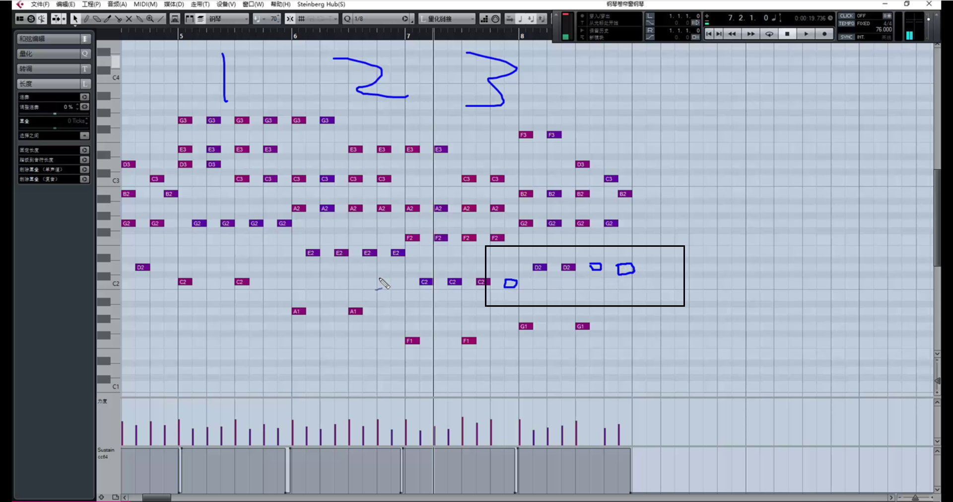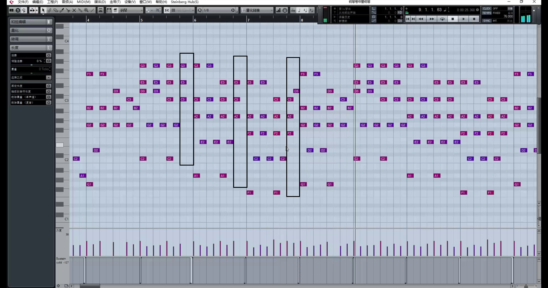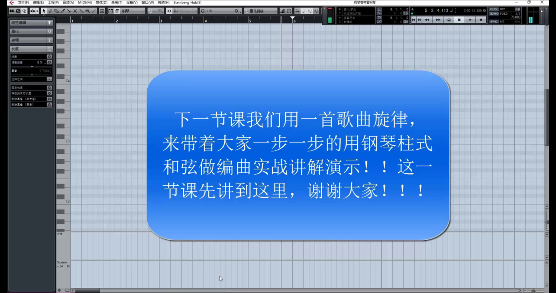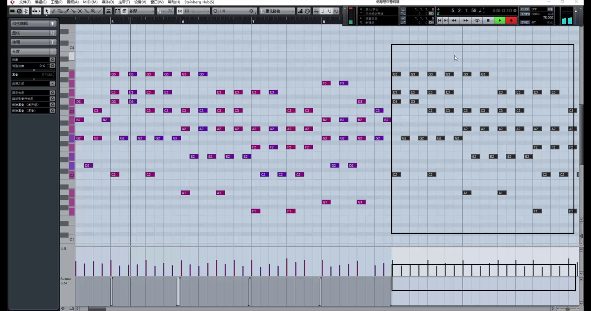 再把第二部分复制一下放到最后面,看能否接的上。(别忘了,把延音踏板效果录进去。)