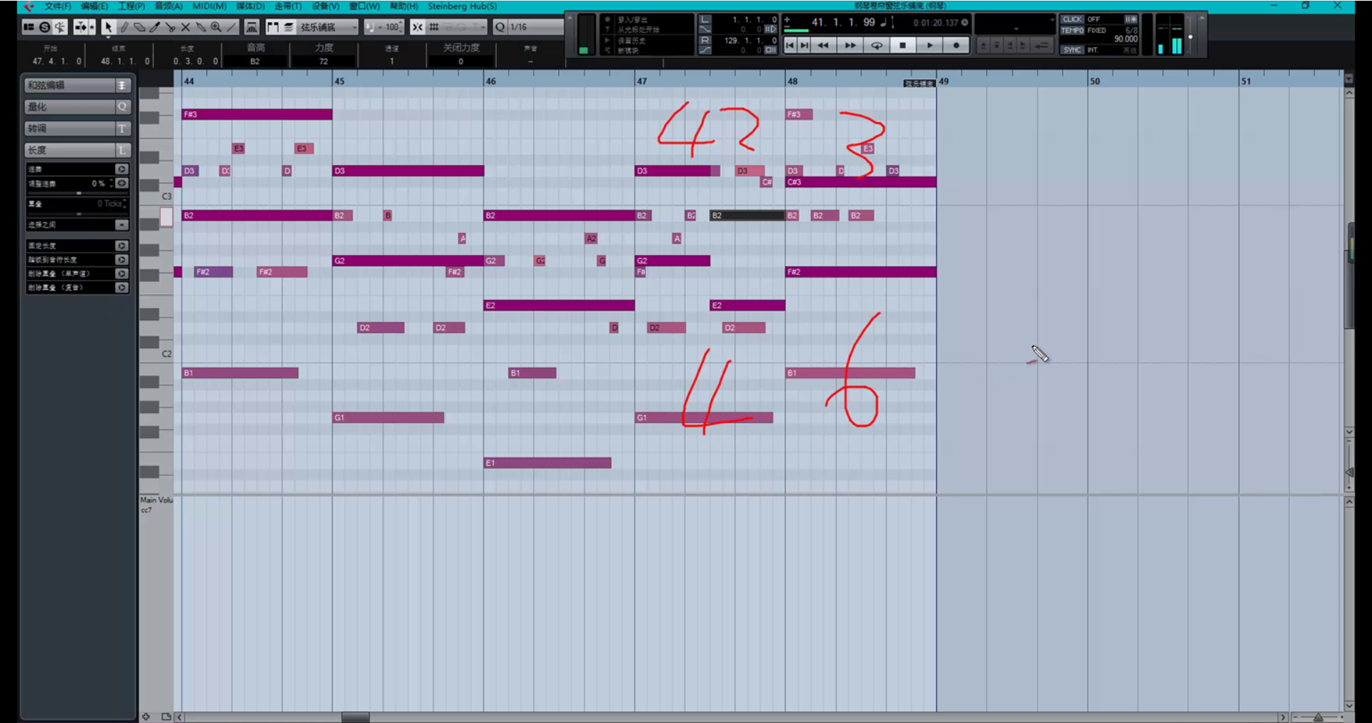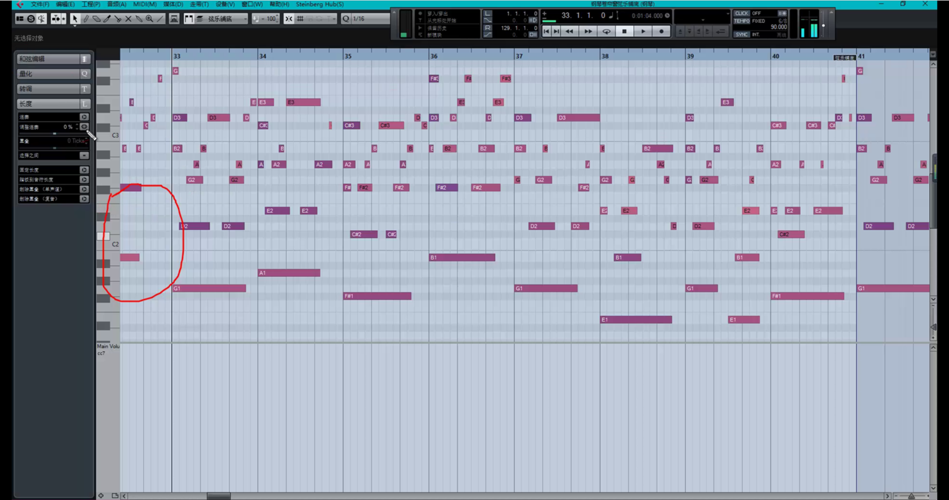 弦乐铺地是低音🔉,所以直接在C2附近编和弦就可以了。