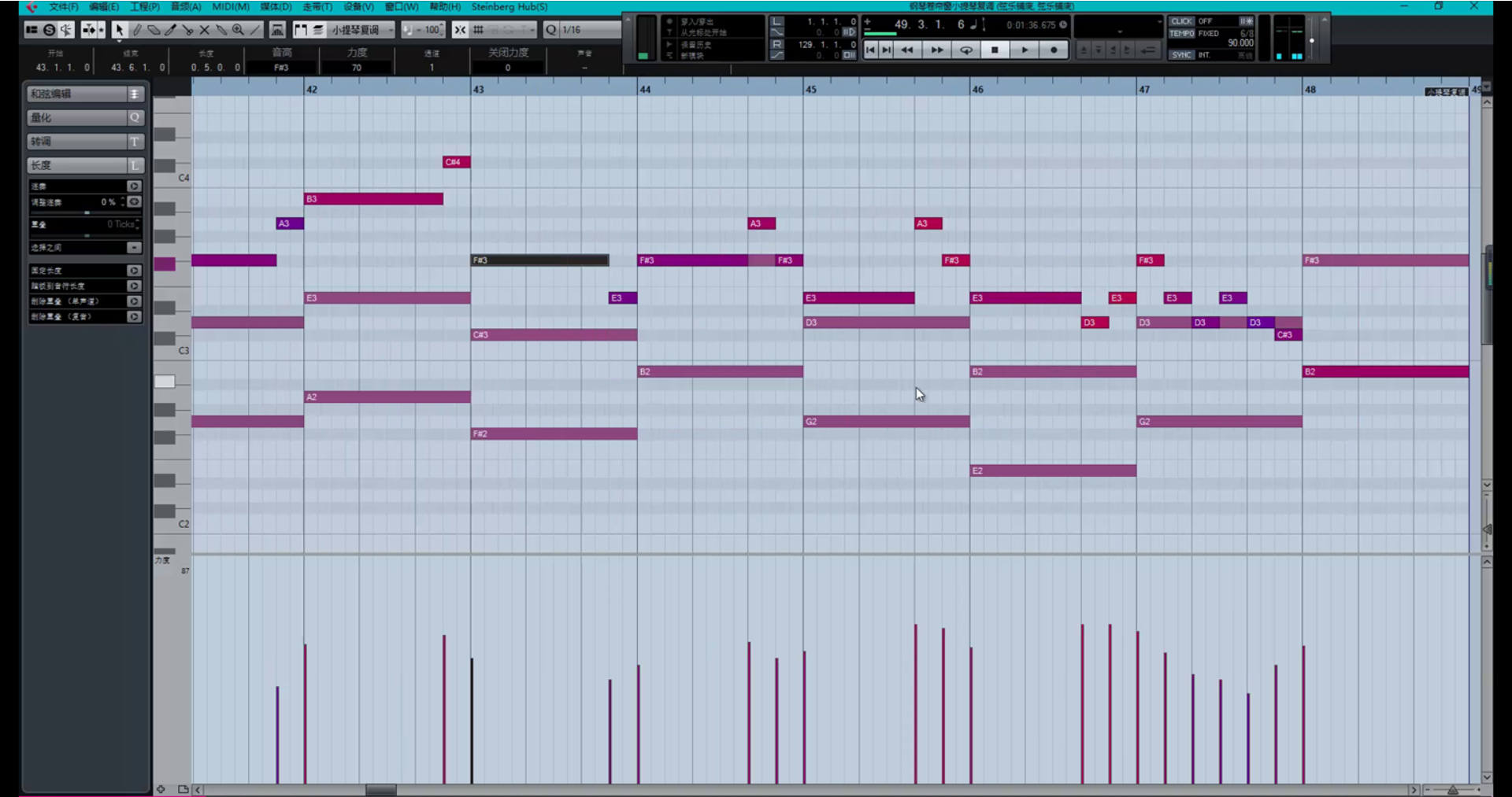 建议把复调的音写在4区。如果有其他想法,可以去试。这里采用这个区间的音,是因为原曲的复调就是这样,毕竟是扒带嘛。