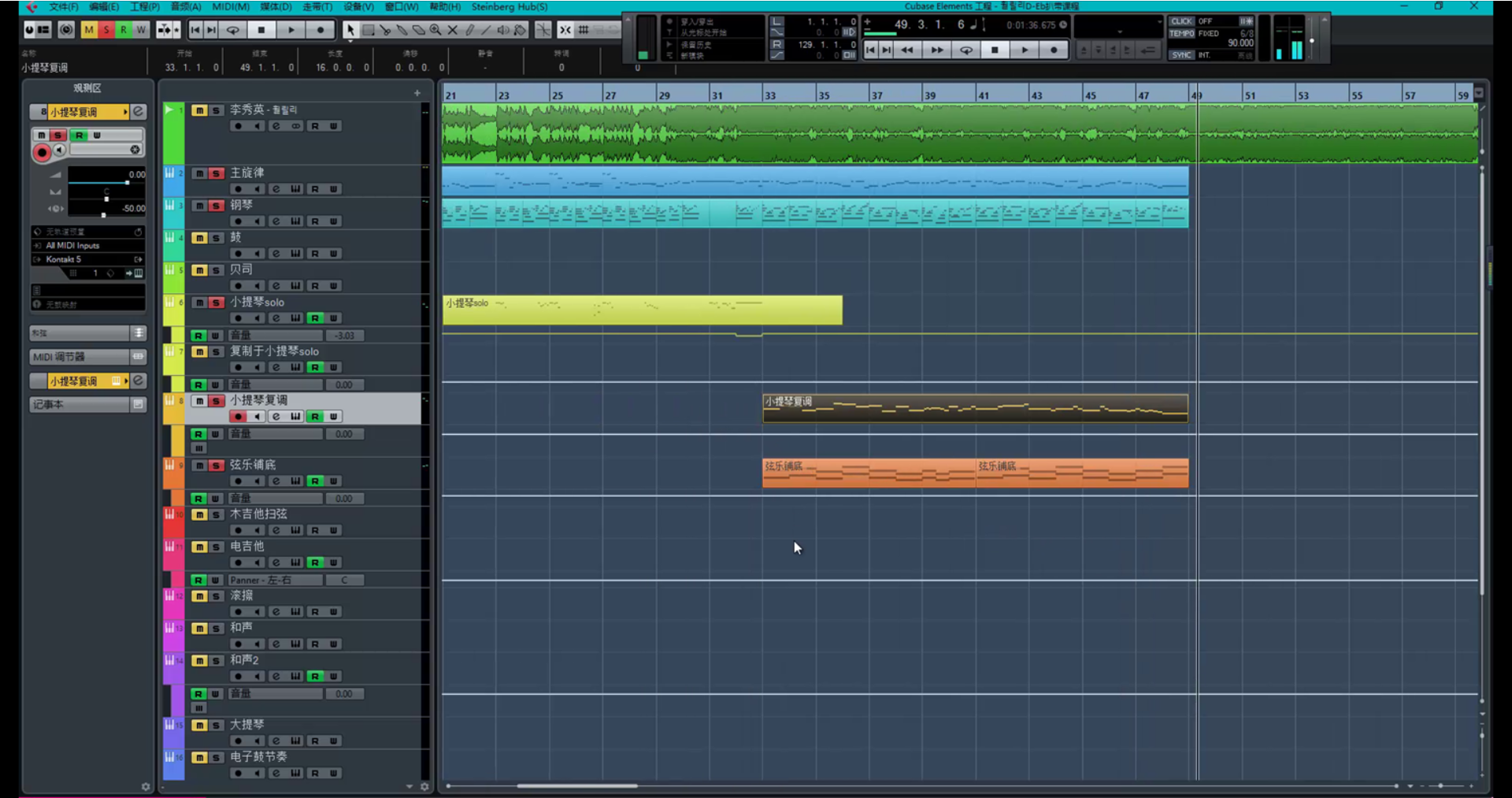 因为多种乐器齐奏,听不出来了,所以自己写复调。
