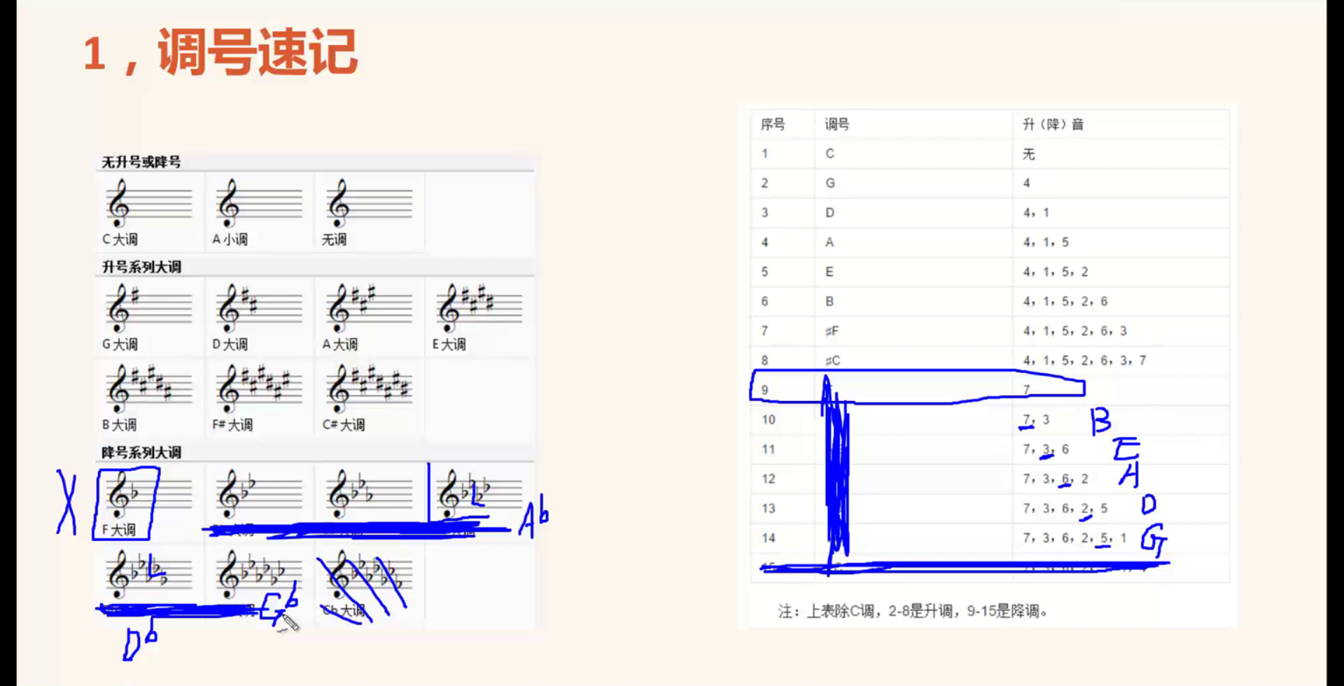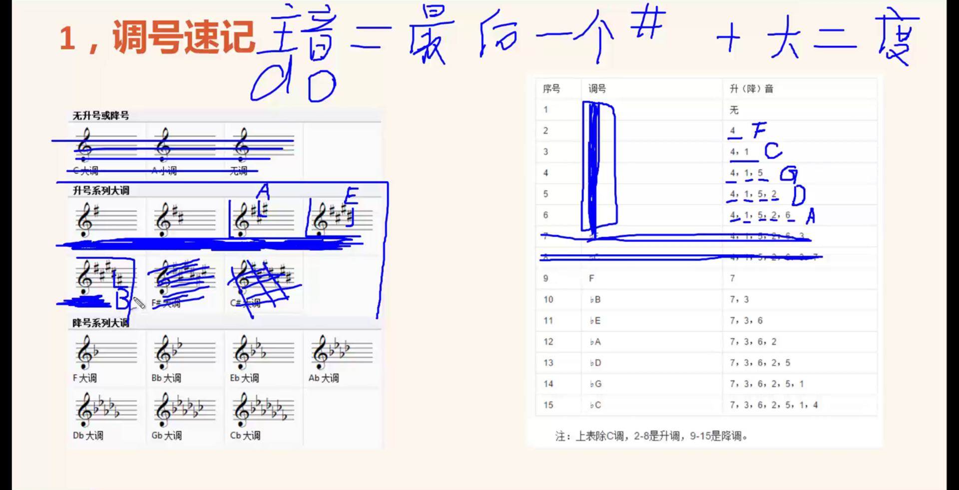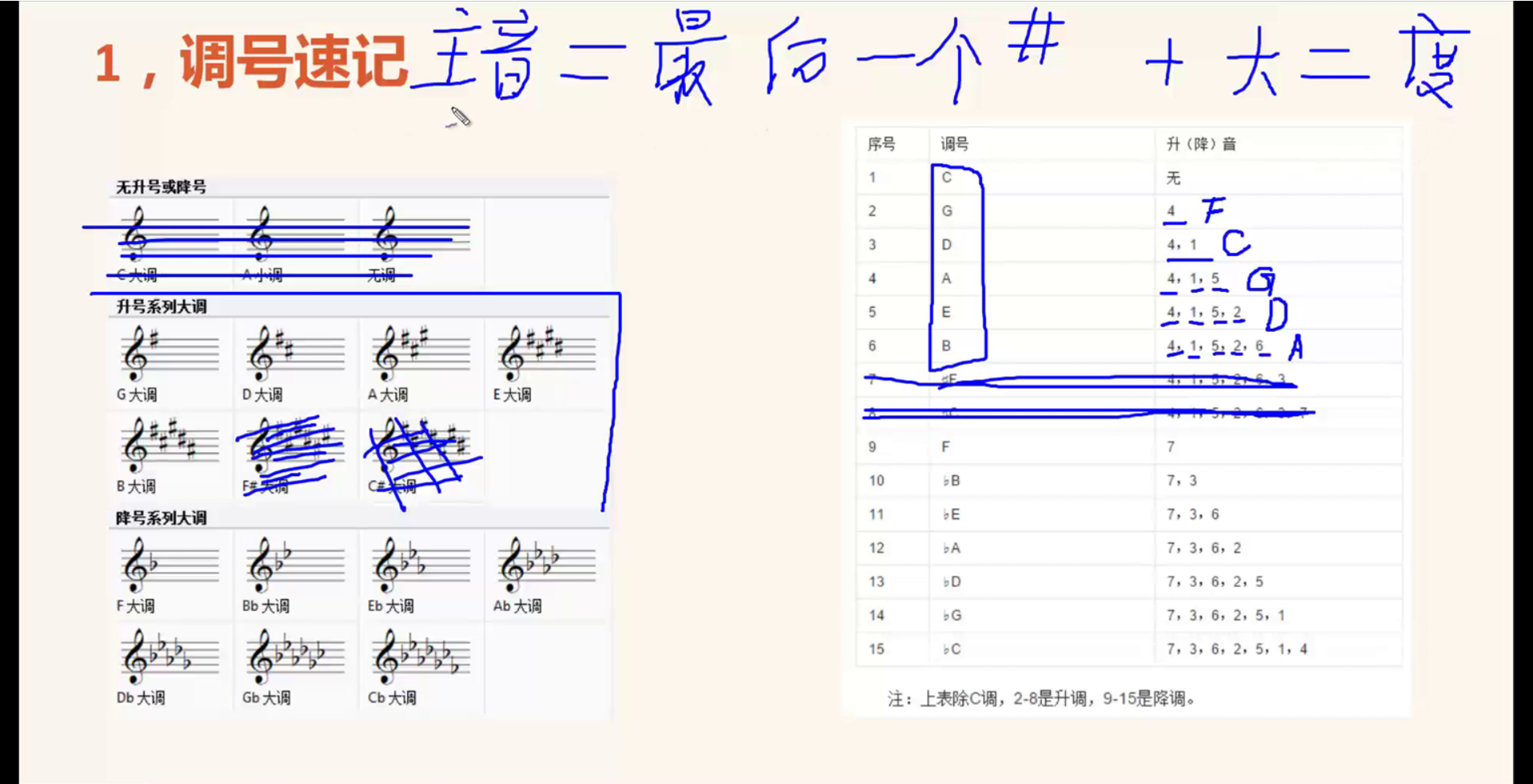 给一个调,写出它的调号,进而知道调内音阶,进而知道它的音程,进而知道它的和弦。