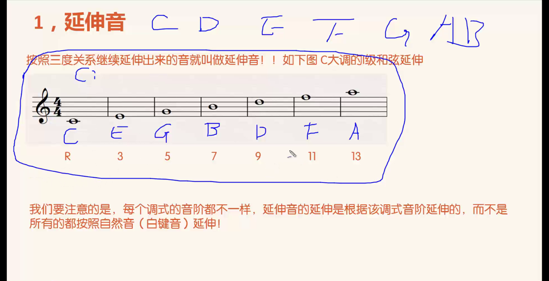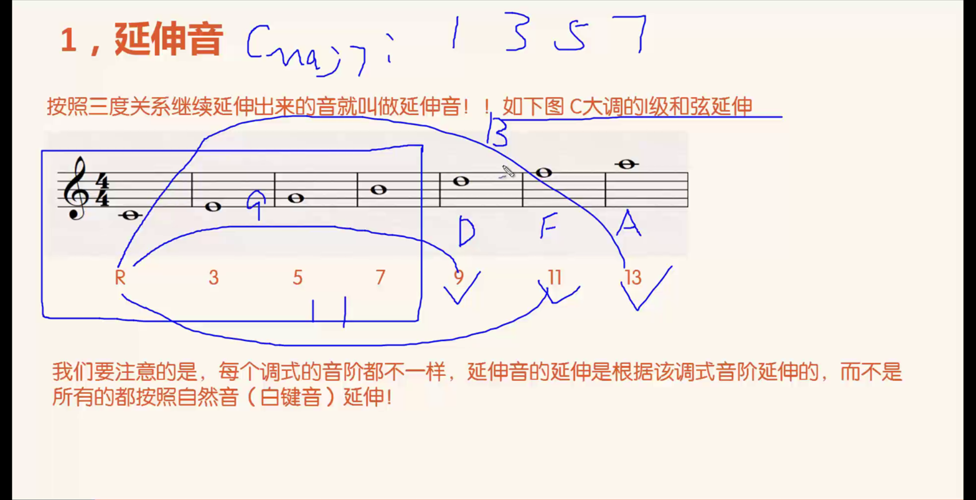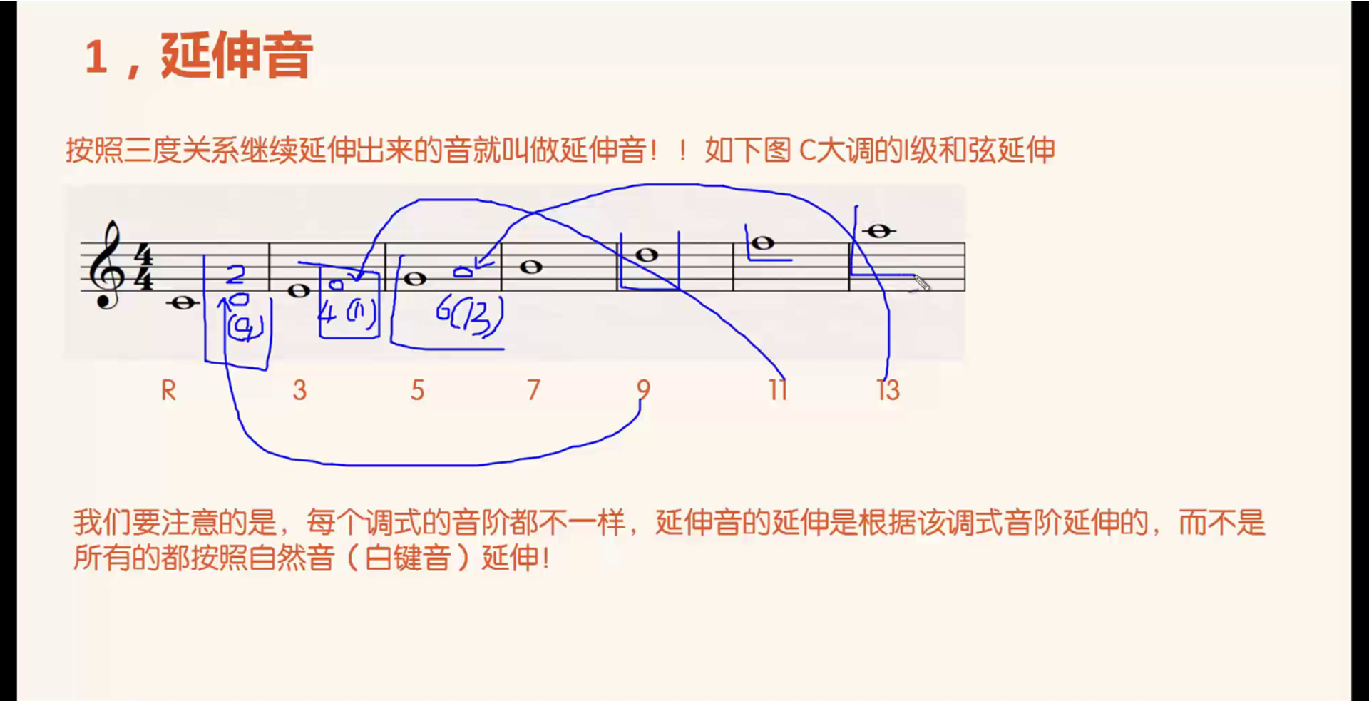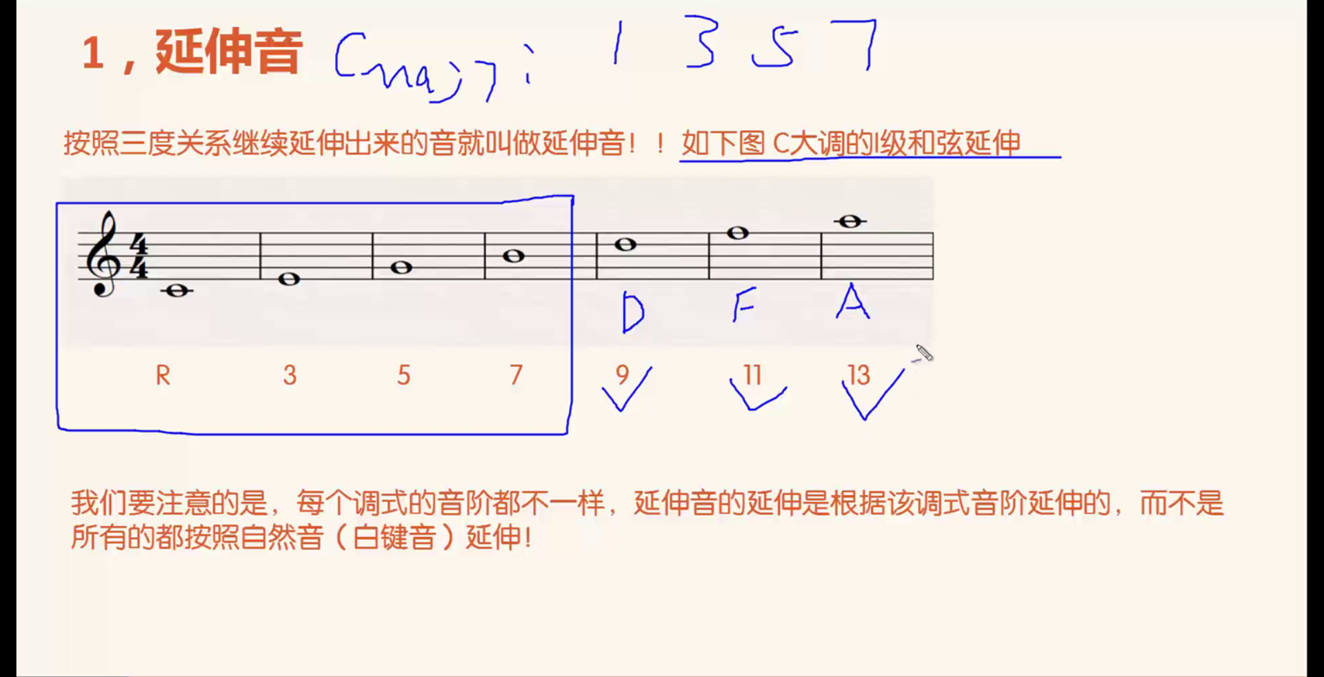 延伸音是从爵士和声演变来的。流行音乐现在也在广泛使用它。所以本节课还是很重要的。