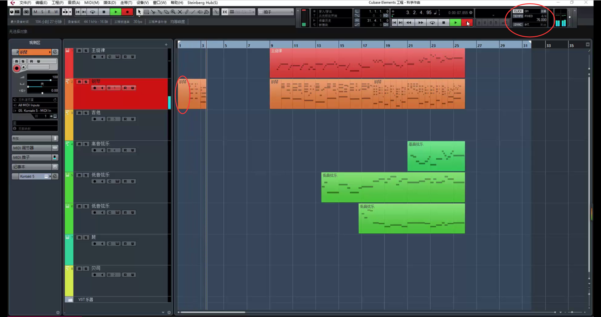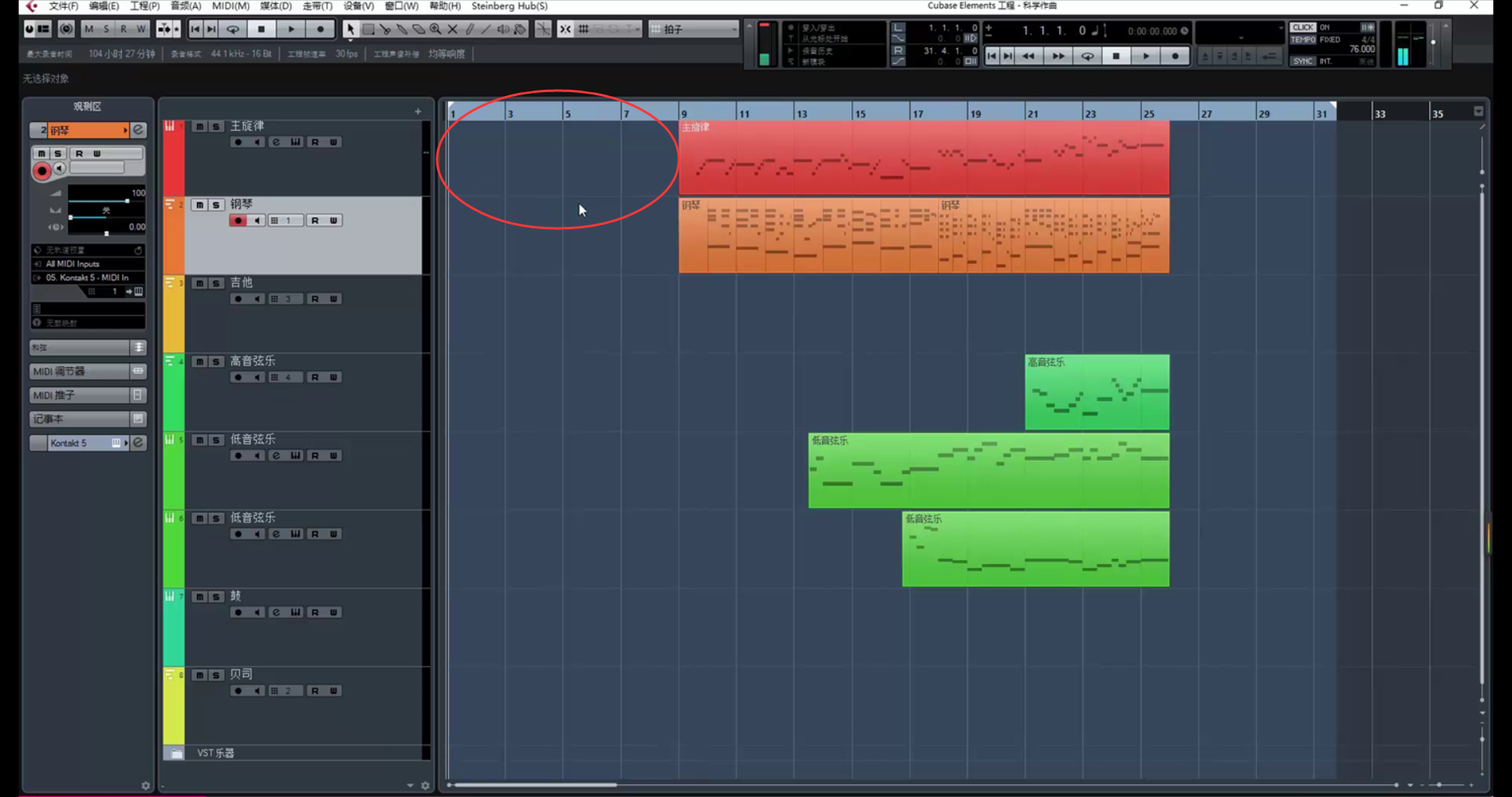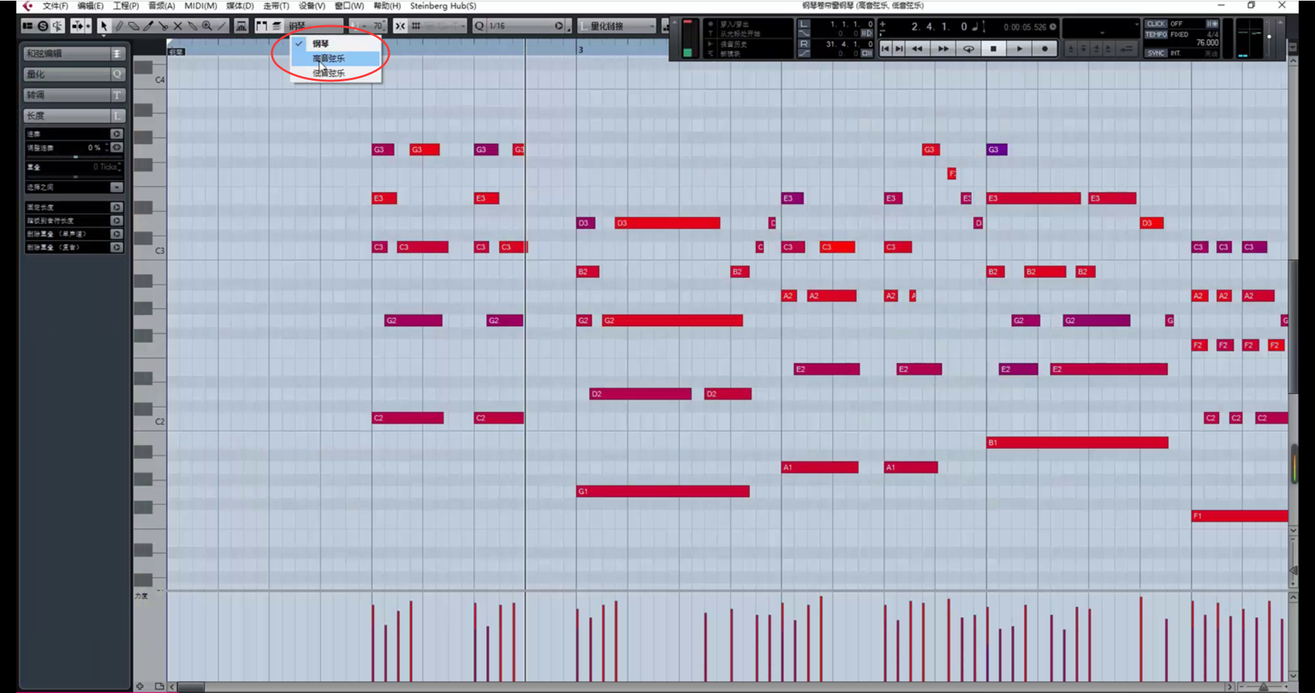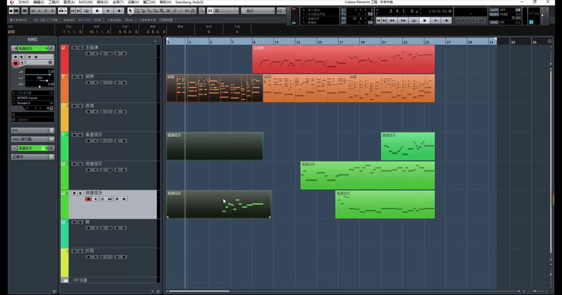 看着前奏和声,配低音弦乐: