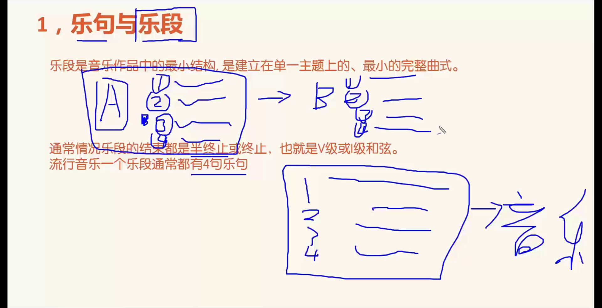 要理解什么是乐句,什么是乐段。只有懂了这些,才能把音乐做得娴熟。分不清乐句、乐段,就很难理解哪里是半终止、哪里是全终止。就很难去分析一首音乐。
