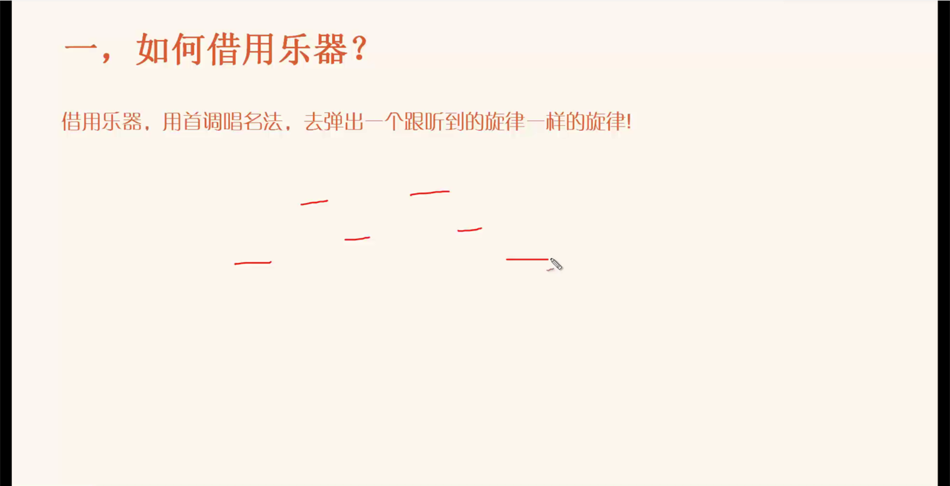听音练习最怕听到相同旋律却认不出来。前两节画出音高的波动,判断哪两个音是相同的。前两节课的内容练习到位,那么这节课才有意义,一般不超过三次就能把后一个音弹对。
