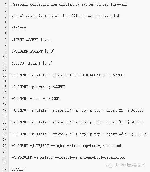 vi /etc/sysconfig/iptables #编辑防火墙配置文件