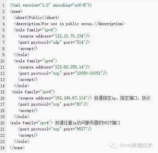 另外,firewall中有Zone的概念,可以将具体的端口制定到具体的zone配置文件中。