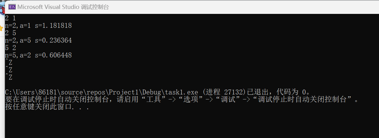 #include<stdio.h> #include<math.h> int main() { int n, a, m,i; double s = 0.0; while (scanf_s("%d%d", &n, &a) != EOF) { m = a; printf("n=%d,a=%d", n, a); for (i = 1; i <= n; i++) { s +=(double) i / m; m = m * 10 + a; } printf(" s=%lf\n", s); s = 0; } return 0; }