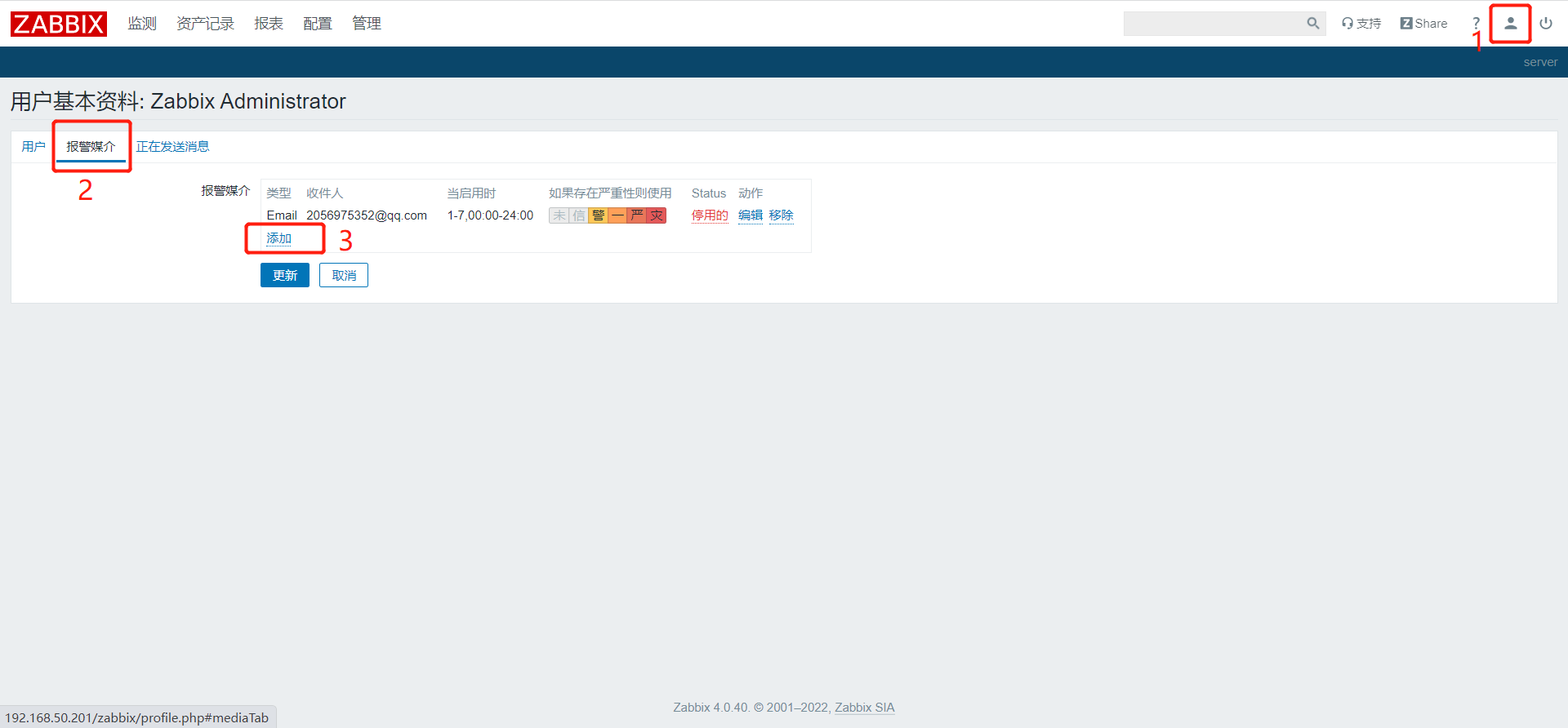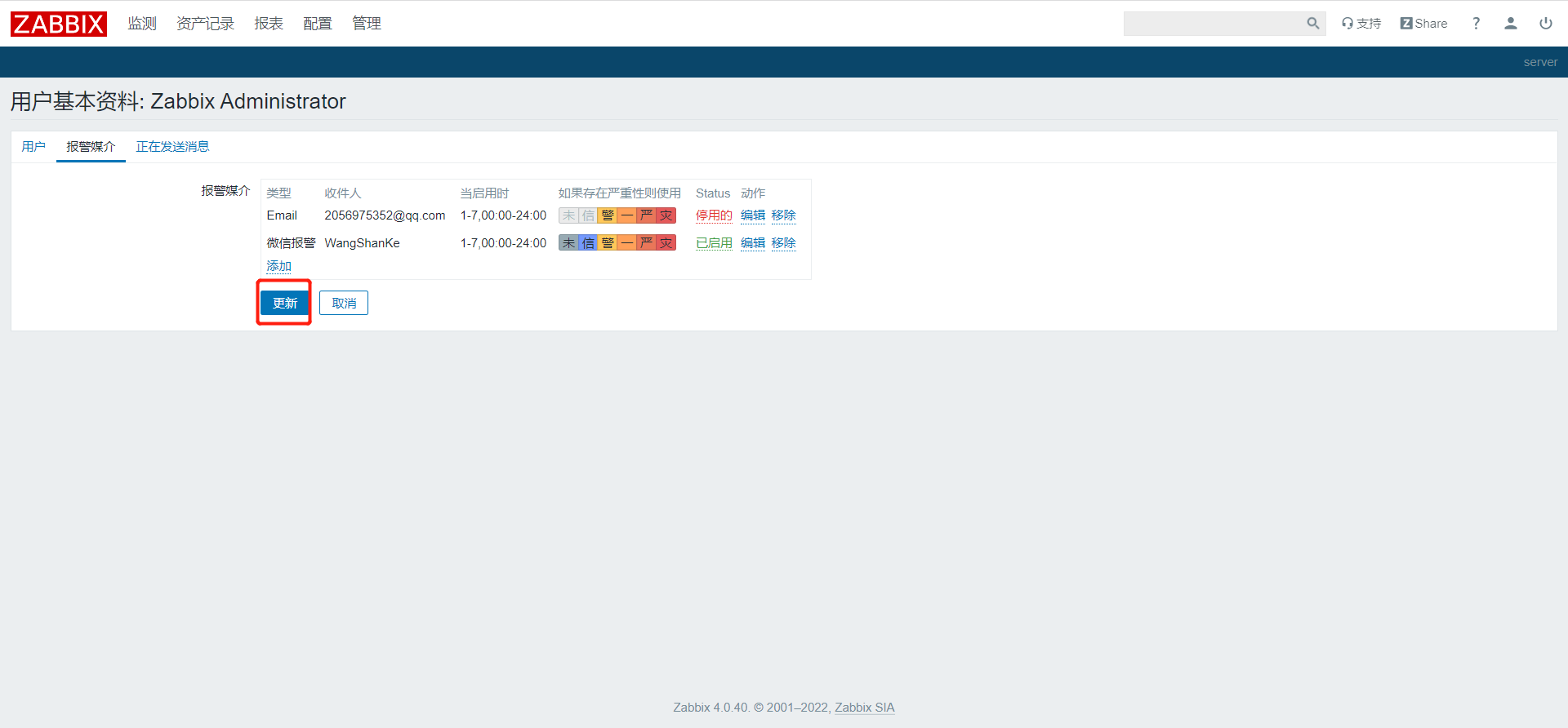 点击更新或者添加(这里因为我这里有一个邮箱报警,所以是更新)
