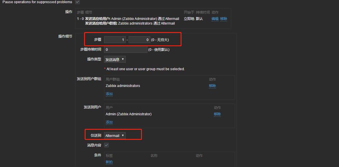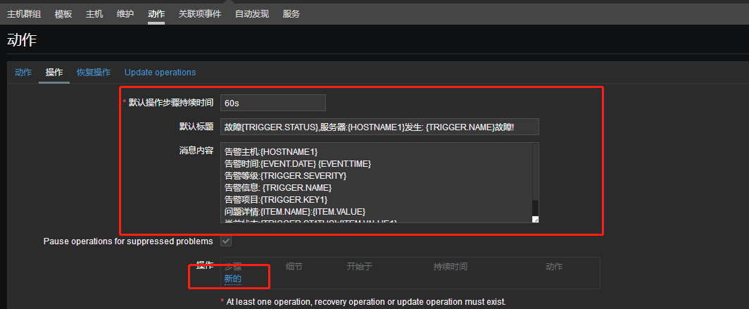 在操作中勾选Pause operations for suppressed problems-->新的