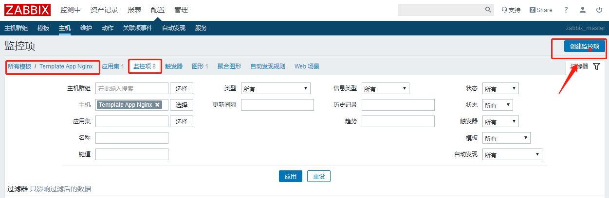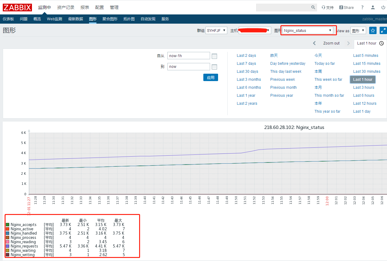 全部创建好后,被监控主机就可以调用nginx监控模板,来监控nginx各项数据了