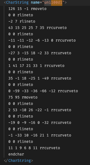 字体是由坐标画出来的,关键词:rmoveto, rlineto, rrcurveto等