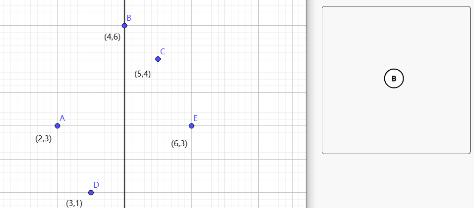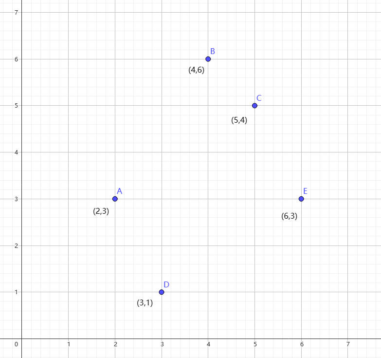 首先,以 x 轴为关键字,然后找到中位数,进行划分