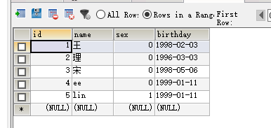 题目2:在上一题基础上,当登录成功后,将t_user表(id、name、sex、birthday)的信息进行显示(要求使用DB.java完成登录和获取t_user表中数据的操作),最后再对t_user表进行一条记录的添加操作。