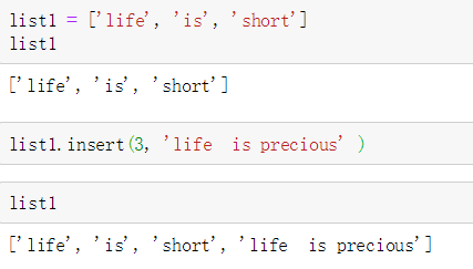 (3)insert--(索引,要插入的对象)把插入的对象插入到索引对应的元素之前
