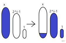 还是画个图,把现在的水量记为 \(x\),如果 \(x<2^i\),就倒不到后一个瓶子: