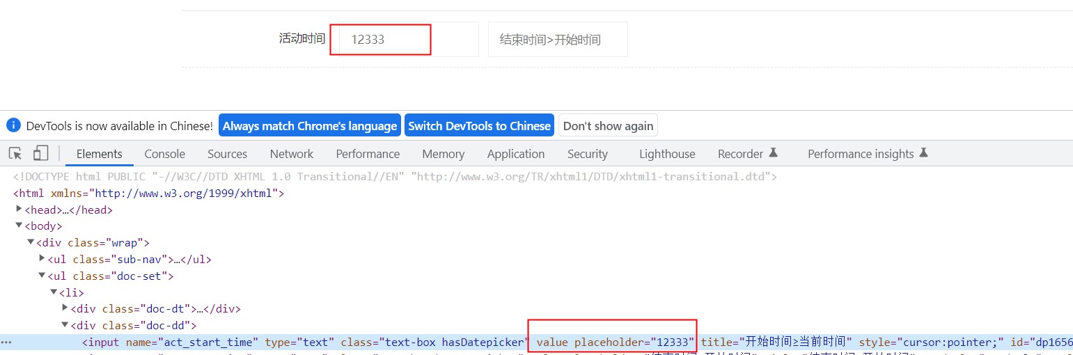 在如上的代码中可以很清晰的看到它是只读属性,那么我们需要填写时间的属性,具体解决问题的步骤为: