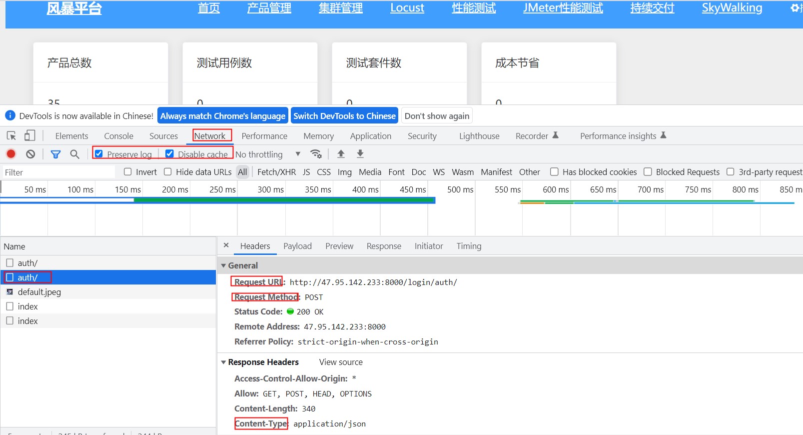 打开该网址:http://101.43.158.84/#/login,并鼠标右键“检查”,勾选“Preserve log”和“Disable cache”