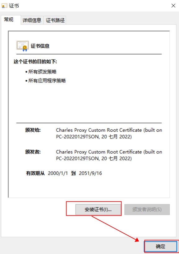 step2:会弹出如下的框:选择安装证书 --->确定即可。