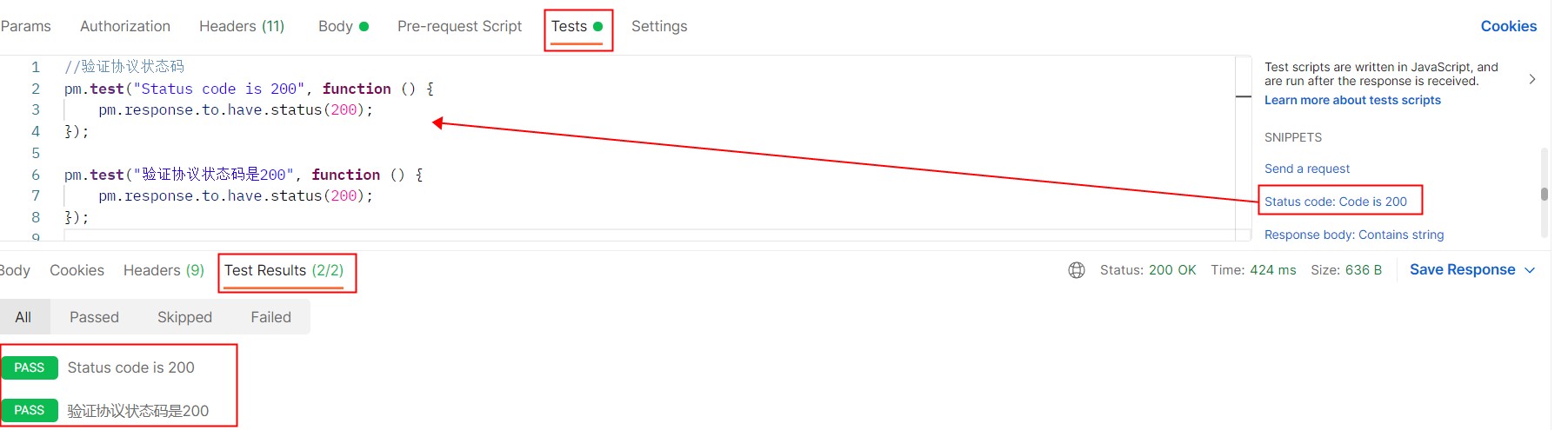 //先定义变量 var jsonData=JSON.parse(responseBody) //验证用户名的正确性 tests["验证用户名的正确性"]=jsonData.user.username==="无涯" //验证电话号码的正确性 tests["验证电话号码的正确性"]=jsonData.user.telephone==="13484545195" //验证is_active的正确性 tests["验证is_active的正确性"]=jsonData.user.is_active===true