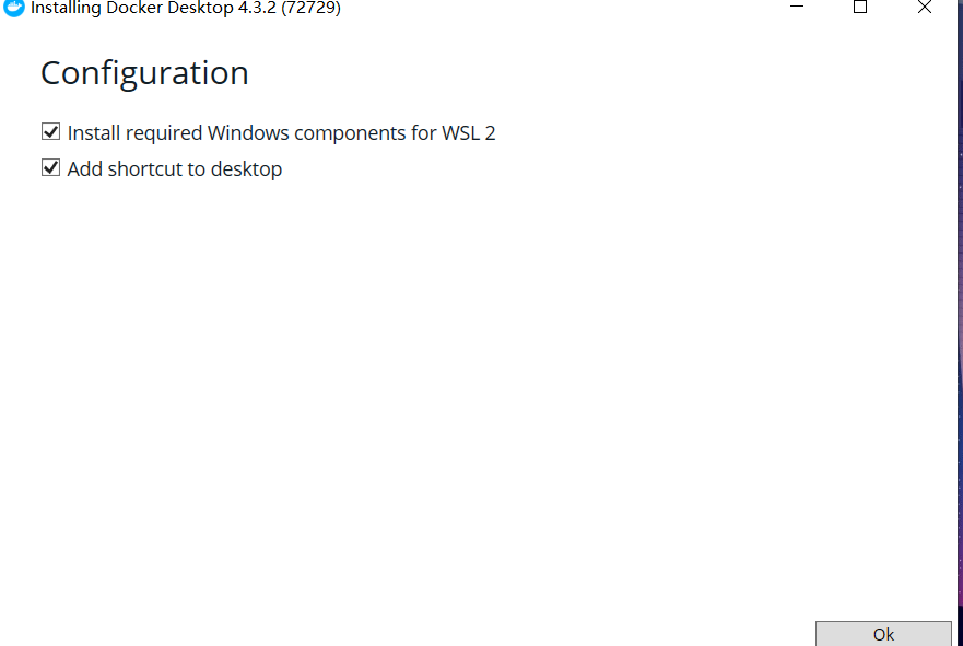 step1:首先以管理员的身份打开“Docker Desktop Installer.exe”,会出现如下的画面,选择“ok”即可,随后会出现该应用加载的情况,加载完成后,会有弹出框,选择重启计算机命令即可。