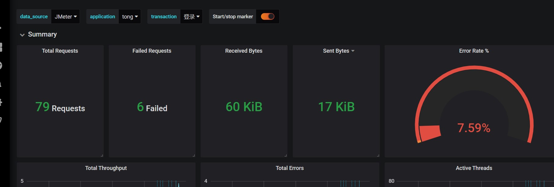 step3:登录到Grafana平台后,选择application的名字同时启动Jmeter: