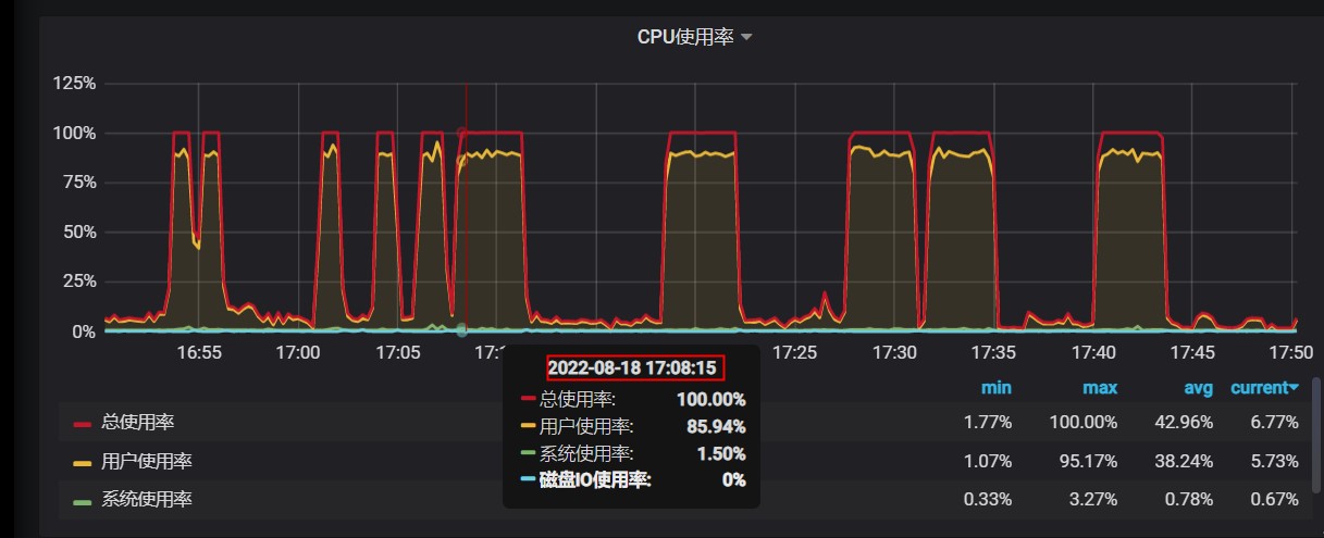 3、查看Linux资源监控:会发现CPU的使用率达到最大100%
