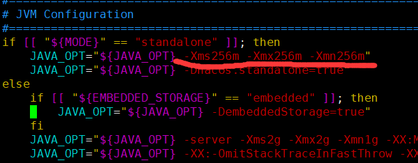 因为自己的阿里服务器内存只有1G,所以将这里从512M 修改为256,实测512启动时不报错,会一直停留不动。