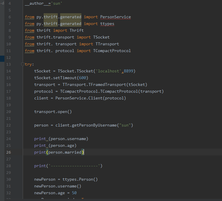 Thrift是一个典型的CS(客户端/服务端)结构,客户端和服务端可以使用不同的语言开发。既然客户端和服务端能使用不同的语言开发,那么一定就要有一种中间语言来关联客户端和服务端的语言,这种语言就是IDL (Interface Description Language)。