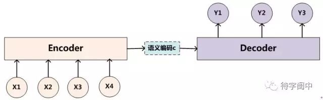 为了便于说明,我们假设对图1的非AM模型的Encoder-Decoder框架进行细化,Encoder采用RNN模型,Decoder也采用RNN模型,这是比较常见的一种模型配置,则图1的图转换为下图: