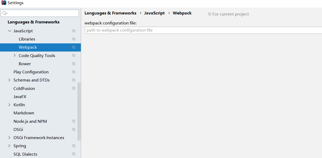 之所以出现上述问题是因为在下图中的webpack中没有指定webpack 的配置文件,或者配置文件指定得不对。找到原因后解决方案就简单了,只需要将该配置文件路径正确配置即可,由于是开发环境,因此配置文件选择webpack.dev.conf.js,至此问题解决。