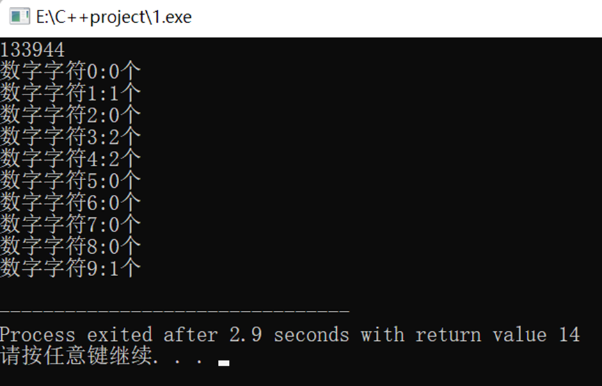 printf("数字字符%d:%d个\n",i,cnt[i]);
