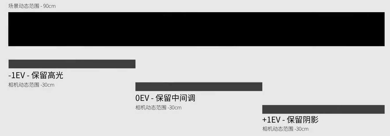 通常拍一张欠曝保留高光信息,一张0EV照片保留中间调信息,拍一张过曝保留阴影信息