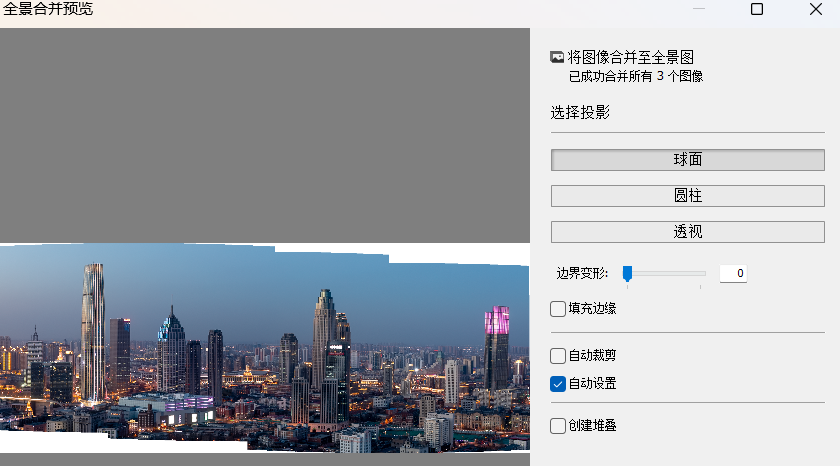 填充边缘:自动填充边缘由于全景合成损失掉的像素。与自动裁剪二选一,根据实际选择