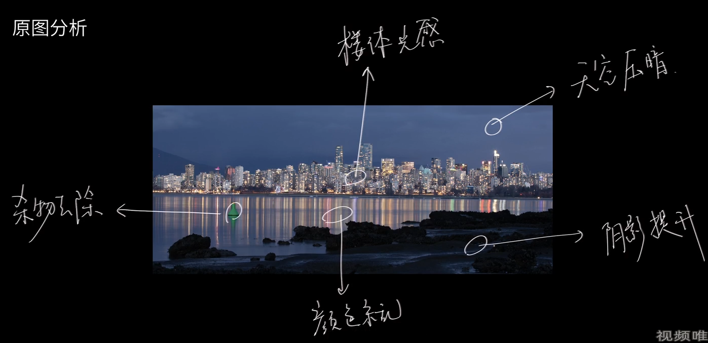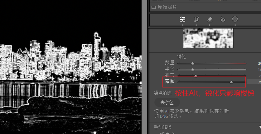 细节:增加锐化,按住Alt拖动蒙版,保证只影响楼体