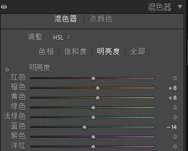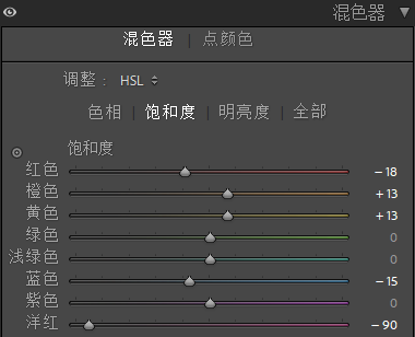 饱和度:黄色适当增加,蓝色适当减少,无关色饱和度拉低