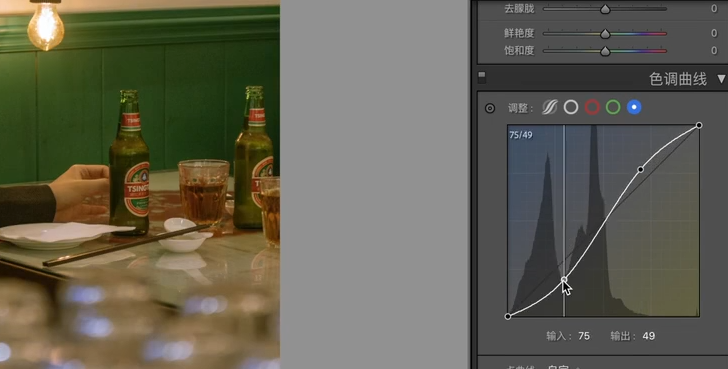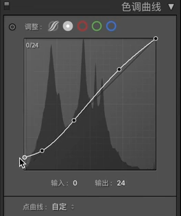 微调曲线,根据画面颜色,适当微调色调曲线偏向