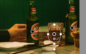 建径向渐变蒙版,人物手,啤酒等主体适当提亮,建立一个大的径向渐变蒙版,主体整体提亮,增加对比。