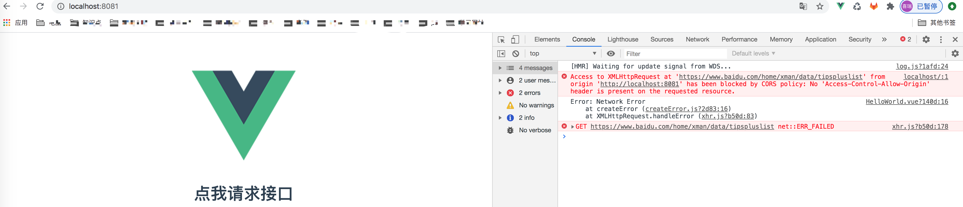 此时运行起来会看到页面提示接口跨域