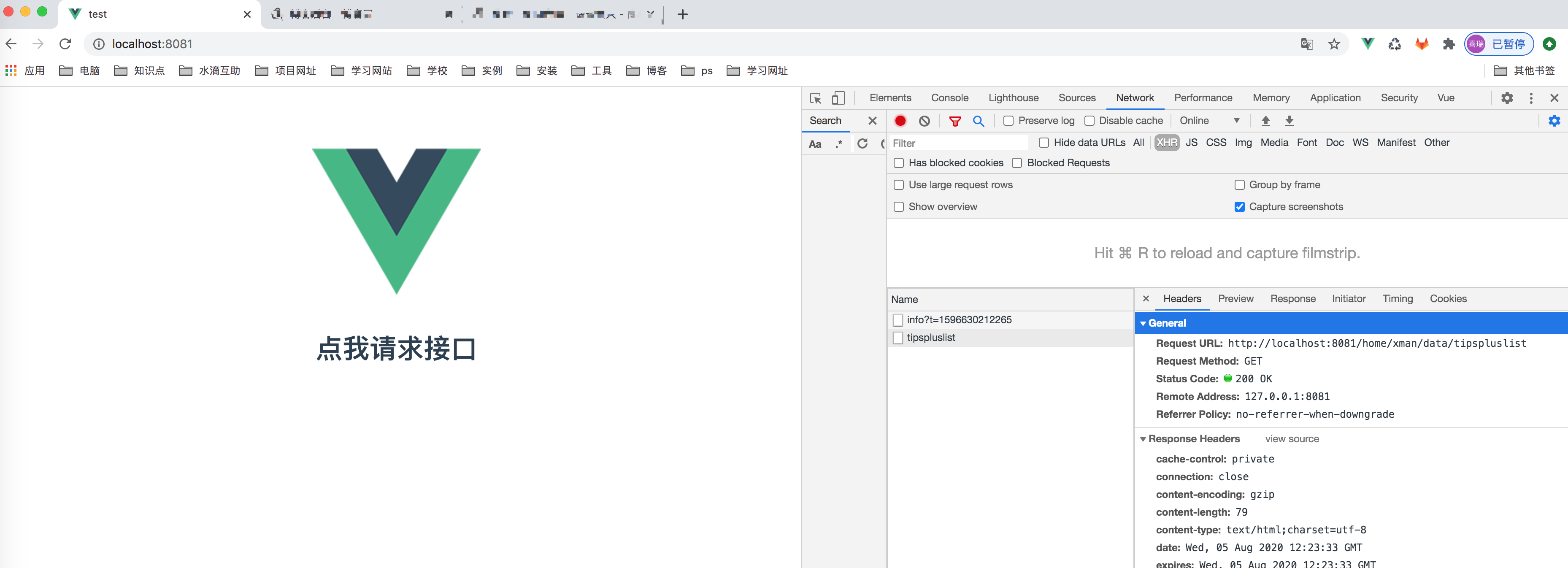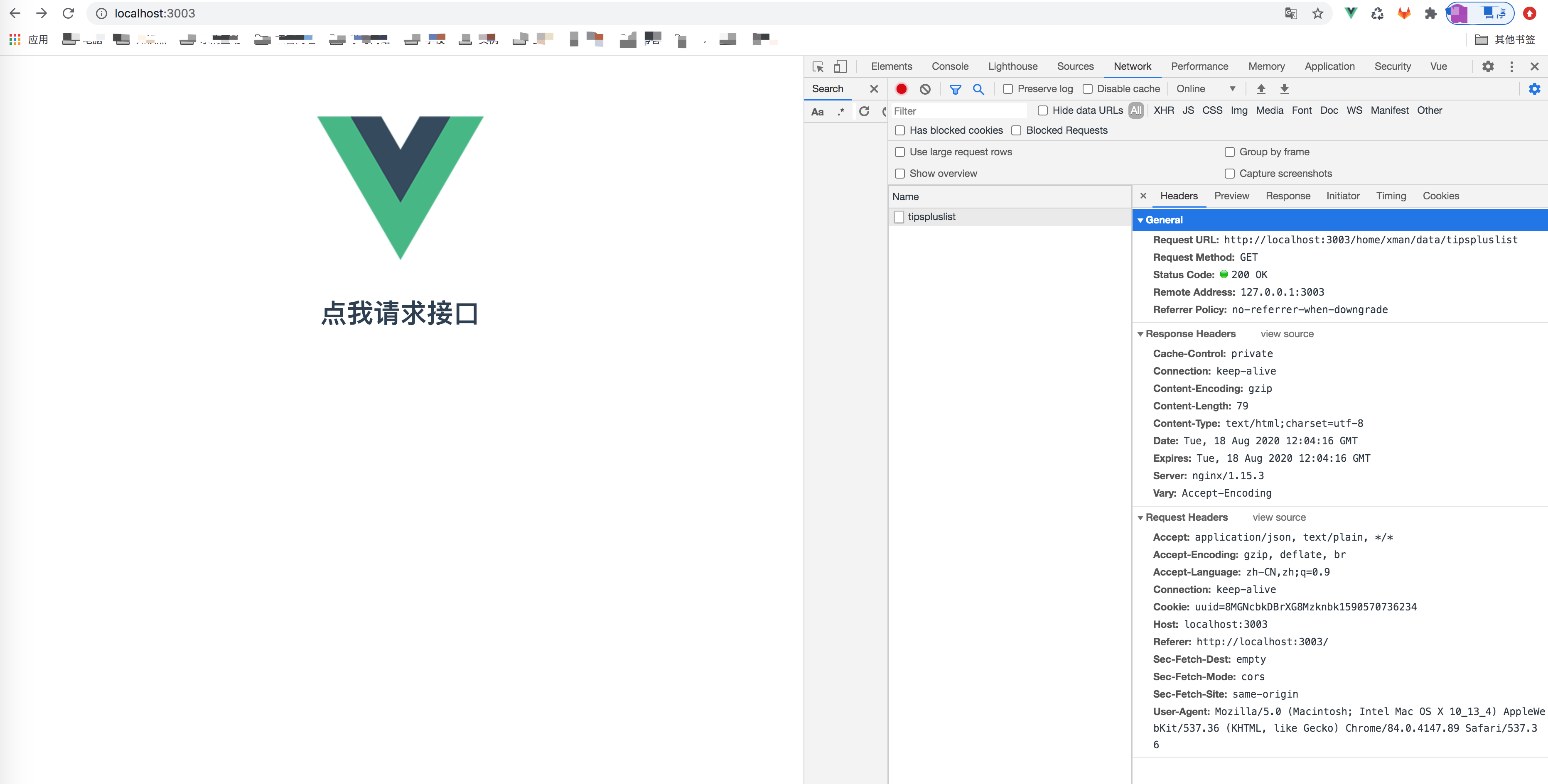 3.打开http://localhost:3003/可以看到页面能成功打开,点击请求接口也能成功请求了
